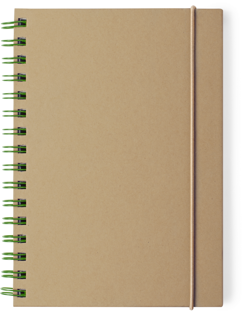 Ringnotizbuch aus unserer Naturlinie mit farbigen Ringen. Harte Einbände aus recyceltem Karton und einem Gummiband in Naturfarben. Mit 80 Blättern im Streifen-Layout und Öko-Design.