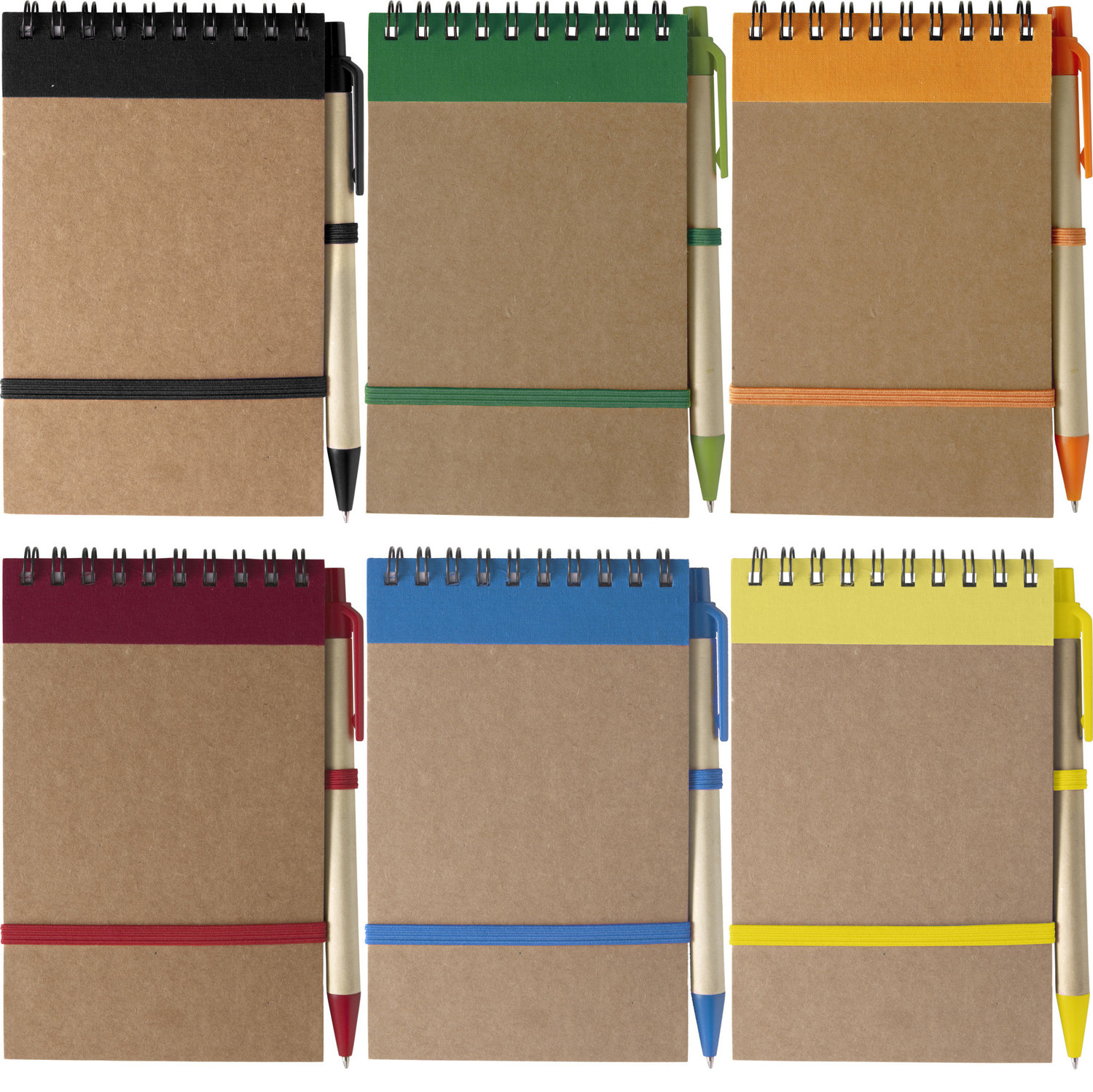 Notizbuch aus recyceltem Karton mit Ringbindung und farbigen Applikationen, 70 linierten Blättern und Kugelschreiber aus Karton / Kunststoff mit blauer Mine.