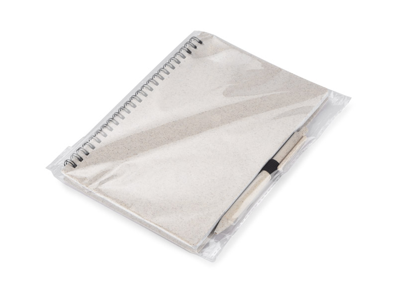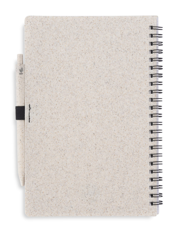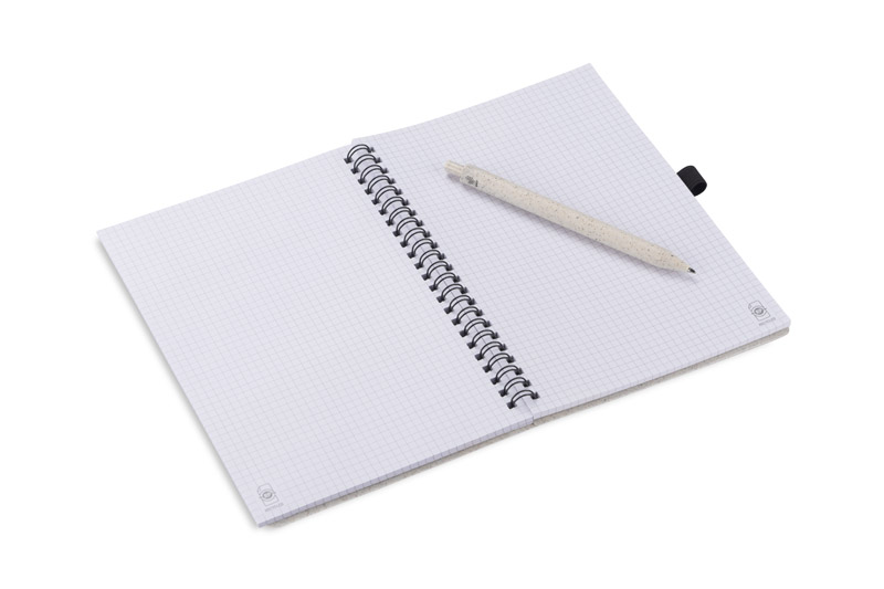 TRESA-Notizbuch mit Stift, farblich passend zum Einband. Der Stift und die Notizbuchhülle bestehen aus Weizenstroh. Ein Spiralnotizbuch mit 70 karierten Blättern aus Recyclingpapier. A5-Format. Blaue Kugelschreibermine.