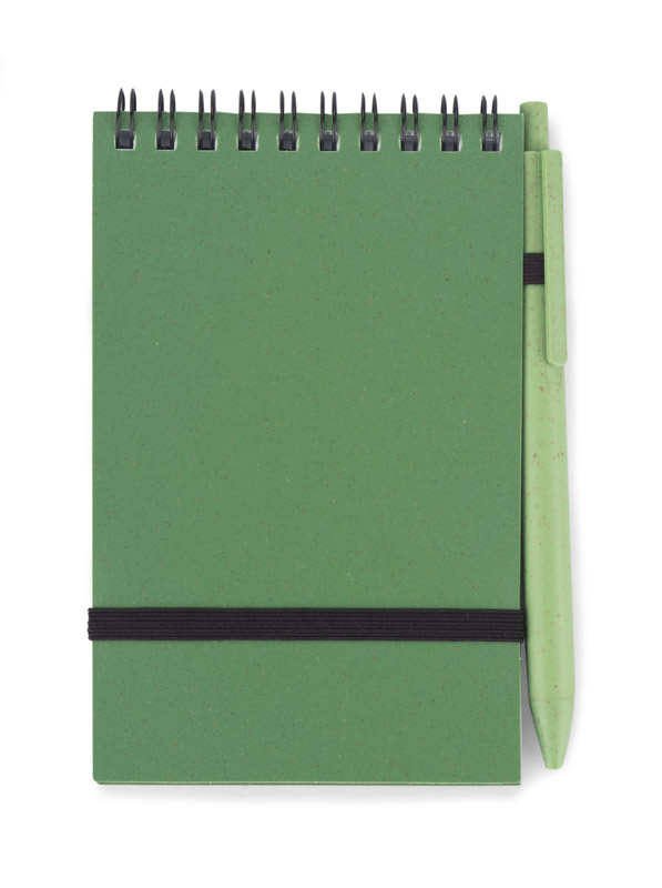 TRESA-Notizbuch mit Stift, farblich passend zum Einband. Der Stift und die Notizbuchhülle bestehen aus Weizenstroh. Ein Spiralnotizbuch mit 70 karierten Blättern aus Recyclingpapier. Mit Gummiband verschlossen. A6-Format. Blaue Kugelschreibermine.