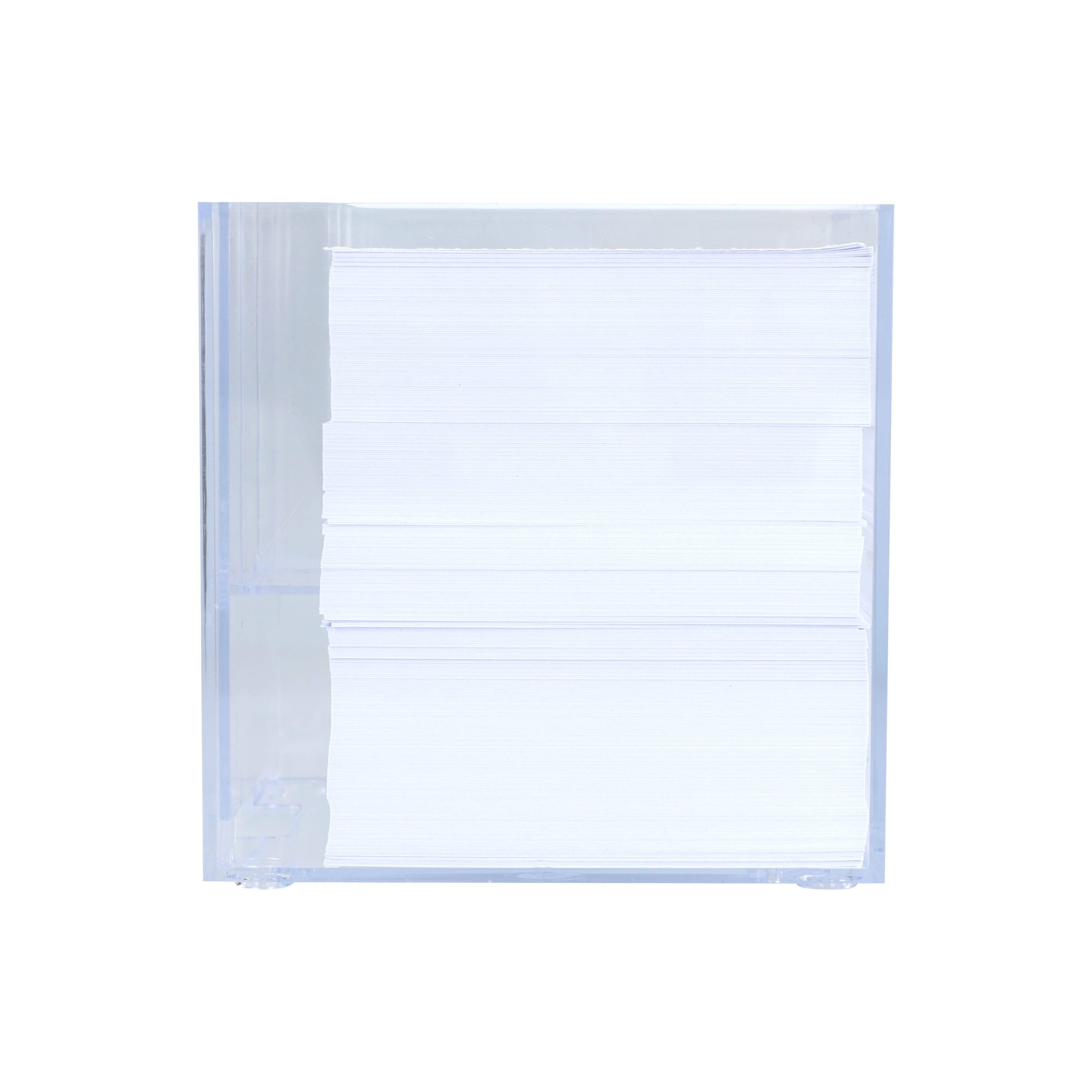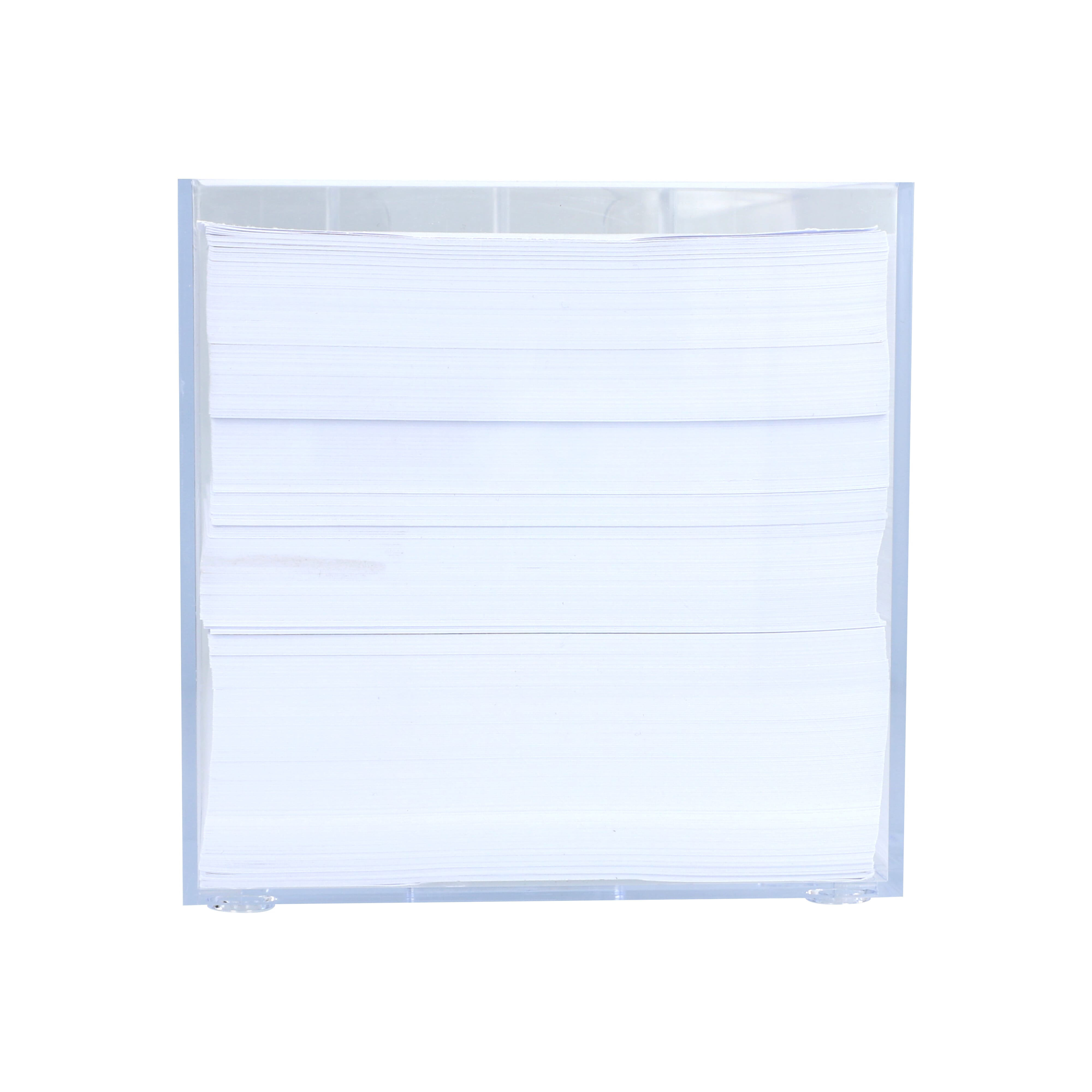 Notizzettel mit weißem Papier in Würfelbox mit vier transparenten Stifteköcher. Ideal für den Gebrauch zu Hause oder im Büro. Ca. 800 Blatt. Jeder Würfel wird eingeschweißt geliefert.