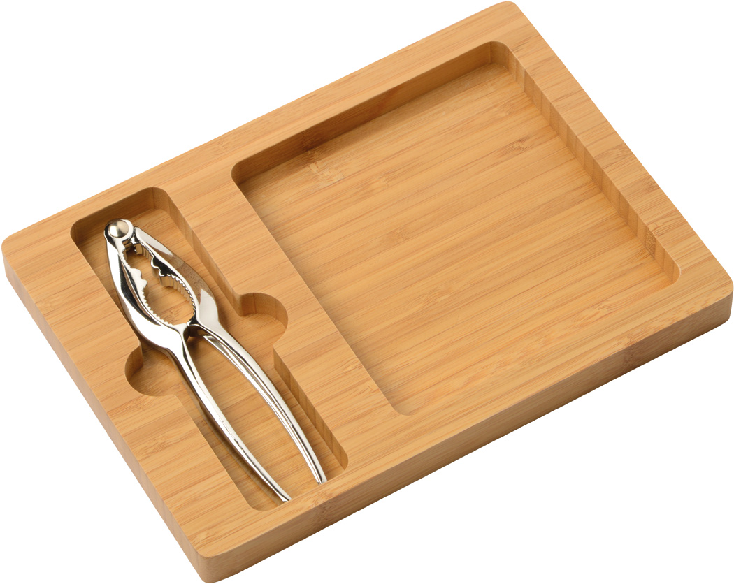 Nussknacker-Set KNACK: Bambus-Schale mit integrierter Vertiefung für den Metall-Nussknacker, in Box