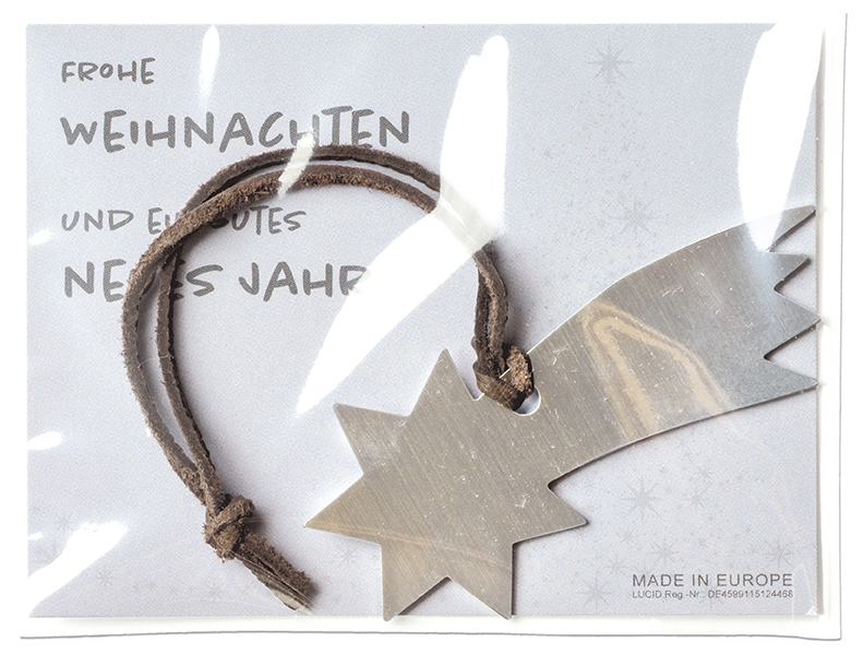 Die originellen Nussknacker aus Edelstahl, in den Formen Komet, Eiskristall oder Tannenbaum, bestechen durch ihre Funktionalität und ein edles Design. Der Nussknacker mit Lederband wird in einer transparenten Hülle mit einem Standard-Einleger verpackt. Einfachdrehen und die härteste Nuss ist geknackt! Der formschöne Nussknacker ist gleichzeitig auch ein weihnachtlicher Edelstahl-Schmuck.