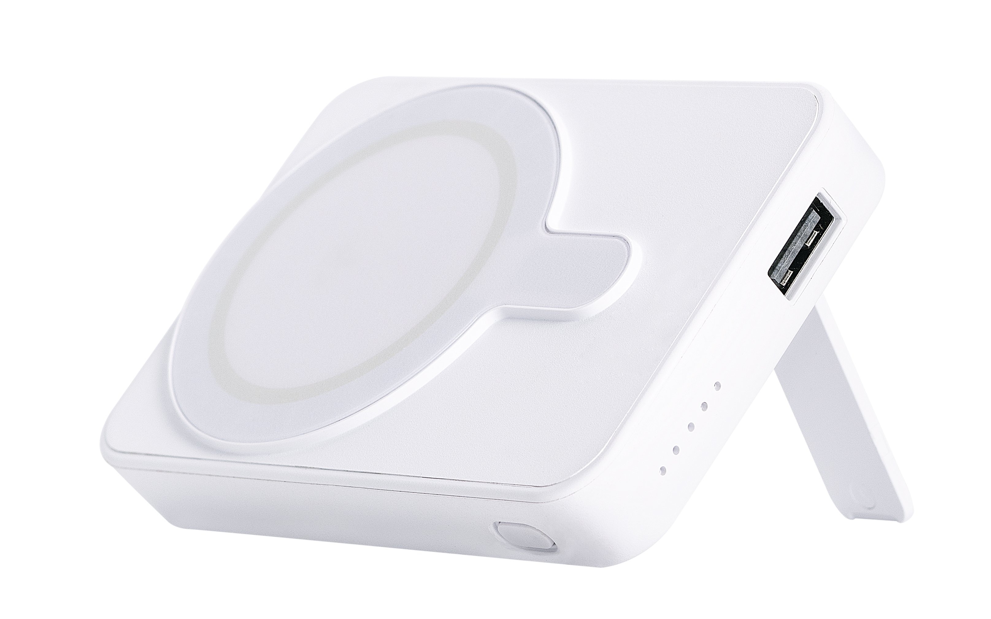 ONE. Mehr braucht niemand. Alle Möglichkeiten in einer Powerbank. Akkubatterie mit 5000mAh Induktives Laden mit 15W (max.) und Magnet- Positionierung Input: USB-C 5V/2,5A, 9V/2A, 12V/1,5A Output USB-C PD: 5V/3A, 9V/2,22A, 12V/1,67A (20W max.) Output USB-A: 5V/3A, 9V/2A, 12V/1,5A Mit Ladekabel 30 cm (USB-A zu USB-C) Material: ABS, weiß Gewicht: 129 g Maße: 92 x 63 x 18 mm Plastikfreie Einzelverpackung Werbeanbringung: Auf der Rückseite, 40 x 40 mm (D2) Auf der Vorderseite unter dem Zentriermagnet 40 x 8 mm (D2) Dieses Produkt unterstützt aktiv den Ausgleich der entstehenden CO2-Emissionen durch zertifizierte Klimaschutzprojekte.