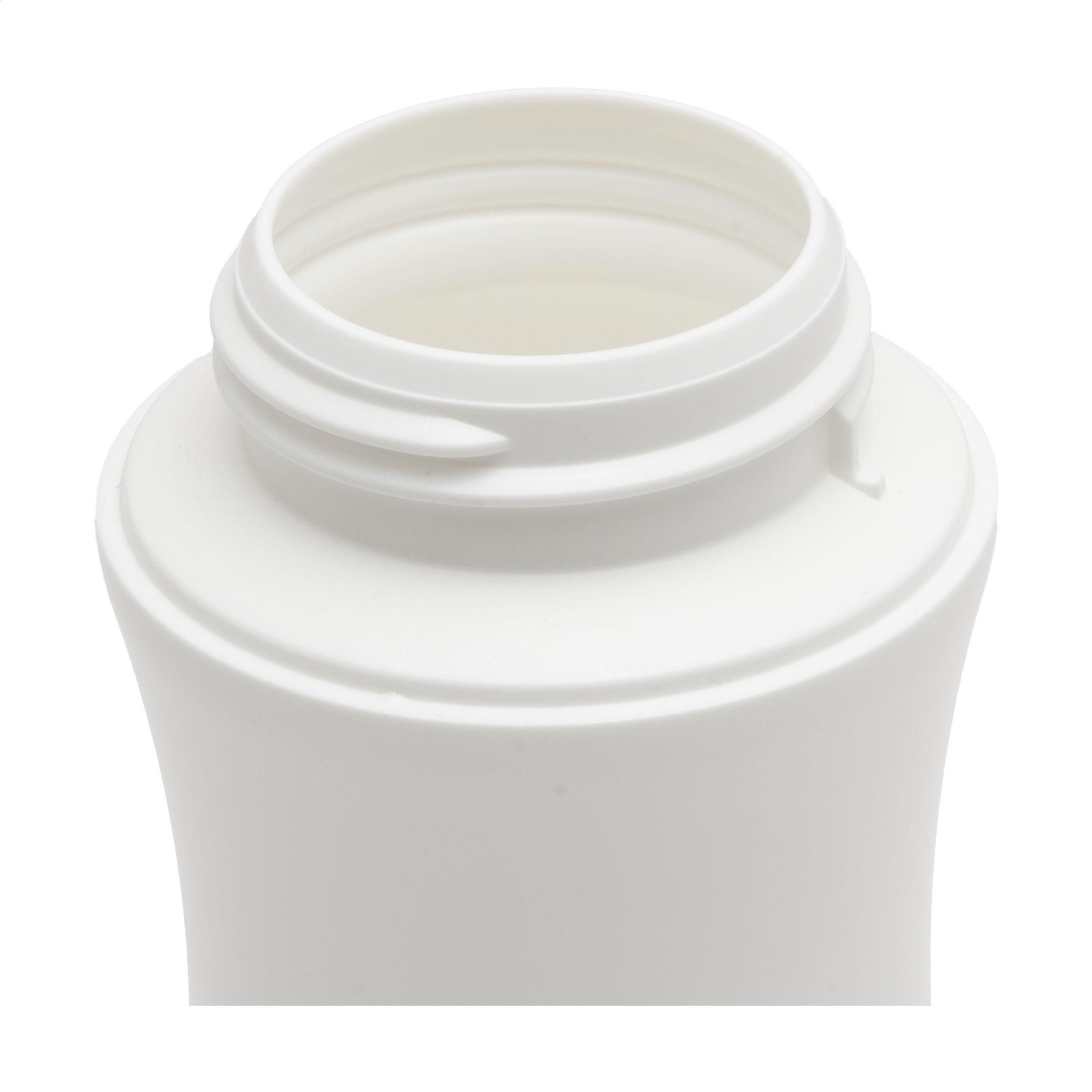 Diese superleichte Wasserflasche ist aus Bio-HDPE gefertigt. Ein zu 100% recycelbares Material aus Rohstoffen auf Zuckerrohrbasis. Die Flasche ist mit einer großen Öffnung zum mühelosen Nachfüllen und Reinigen sowie einer kleinen Trinköffnung mit einem festen Schraubverschluss versehen. Auslaufsicher und für Lebensmittel zugelassen. Nicht spülmaschinengeeignet. Fassungsvermögen 500 ml. Made in Holland.