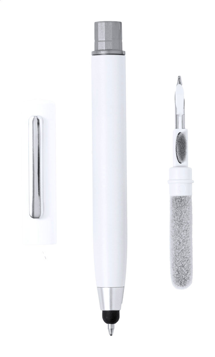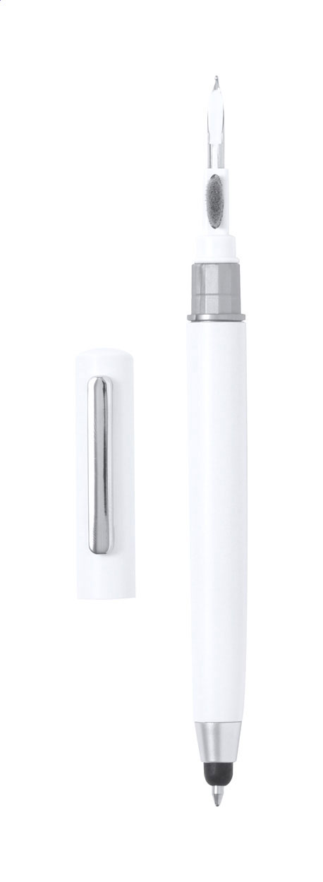 Drehkugelschreiber und Touchpen aus ABS-Kunststoff (blauschreibend) mit eingebautem Ohrhörer-Reinigungskit.