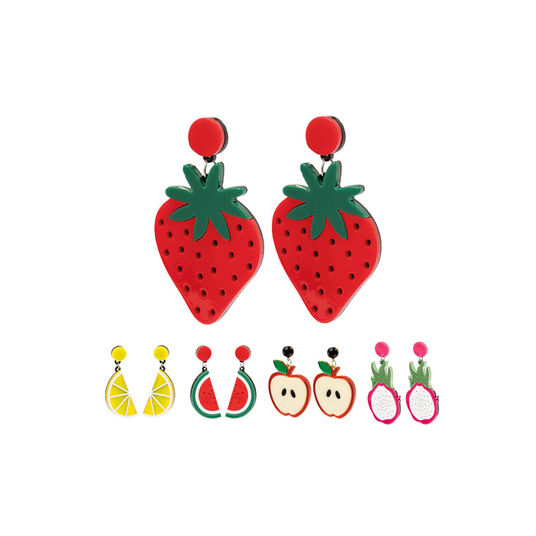 Frische und originelle Kollektion von Obstohrringen. Fesselnd und farbenfroh, geformt wie Erdbeeren, Pitayas, Äpfel, Wassermelonen oder Zitronen, ein Stil-Statement. Mit Liebe zum Detail und Clipverschluss gefertigt. Präsentiert in weißem Karton und in einer individuellen Tasche.