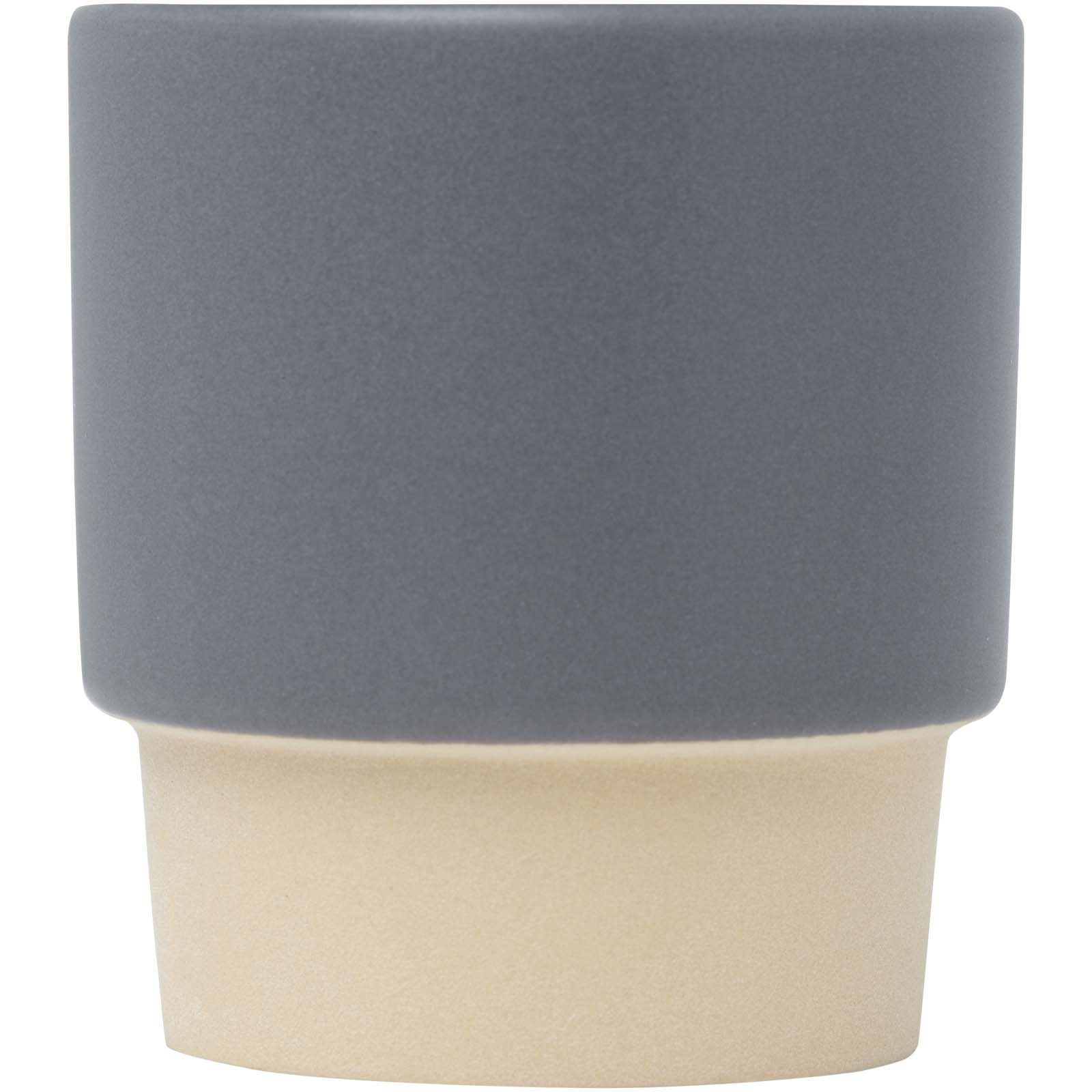 Die Olympia Espressotasse hat ein platzsparendes, stapelbares Design und ein Fassungsvermögen von 130 ml. Matte Oberfläche. Verpackt in einer Geschenkbox aus recyceltem Karton.