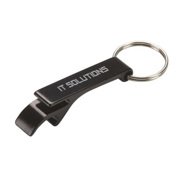 Schlüsselanhänger mit Öffner aus Aluminium.