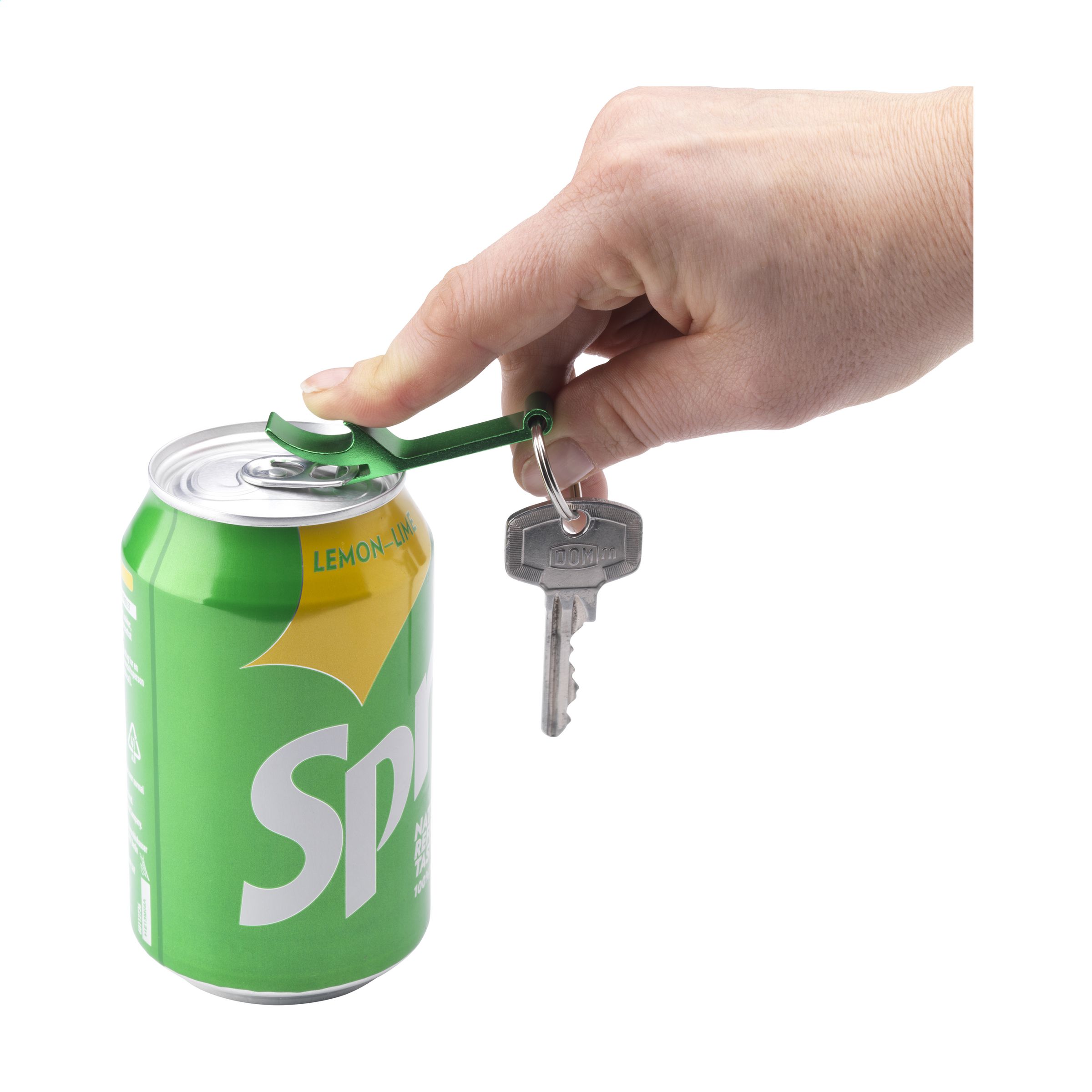 Schlüsselanhänger mit leichtem Flaschenöffner aus recyceltem Aluminium. GRS-zertifiziert. Gesamtes recyceltes Material: 79%. Durch die Verwendung von recyceltem Aluminium werden bei der Herstellung dieses Produkts weniger neue Rohstoffe verwendet. Das bedeutet weniger Energieverbrauch und weniger Wasserverbrauch.