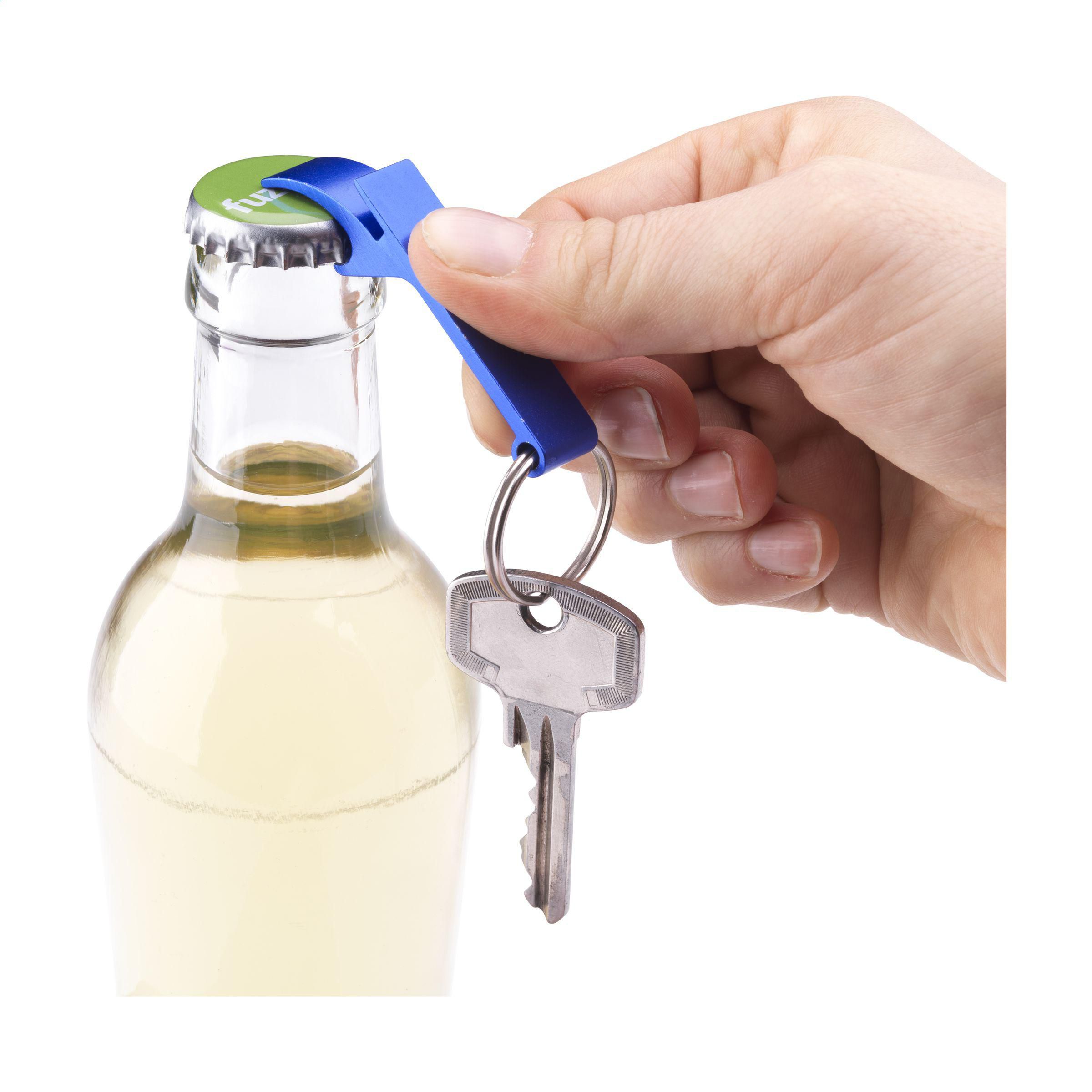 Schlüsselanhänger mit leichtem Flaschenöffner aus recyceltem Aluminium. GRS-zertifiziert. Gesamtes recyceltes Material: 79%. Durch die Verwendung von recyceltem Aluminium werden bei der Herstellung dieses Produkts weniger neue Rohstoffe verwendet. Das bedeutet weniger Energieverbrauch und weniger Wasserverbrauch.