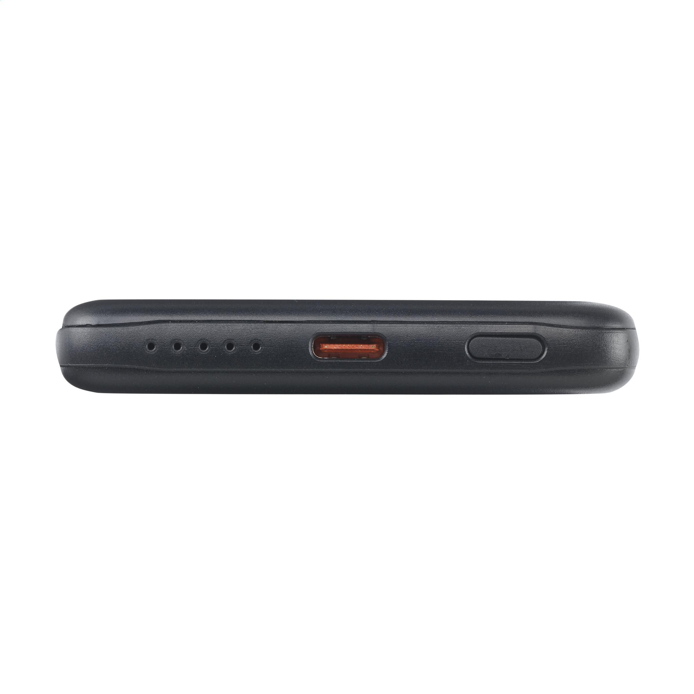 Magnetische, kabellose 15-W-Powerbank. Das Gehäuse besteht zu 100% aus GRS-zertifiziertem recyceltem Post-Consumer-ABS. Mit eingebautem Polymer-Li-Ionen-Akku (5000 mAh). Befestigen Sie das Ladegerät an der Rückseite Ihres Mobiltelefons, um Ihr Gerät aufzuladen. Kompatibel mit allen mobilen Geräten, die das kabellose Aufladen per QI unterstützen. Leistung: 15W. Bei anderen Handys kann es als normales Ladegerät verwendet werden. USB-C Eingang: 5V⎓3A, 9V⎓2.22A. USB-C Ausgang: 5V⎓3.0A 9V⎓ 2.22A 12V⎓1.67A. Inklusive USB-C/USB-C-Ladekabel aus recyceltem TPE und Gebrauchsanweisung. GRS-zertifiziert. Gesamtes recyceltes Material: 21%.