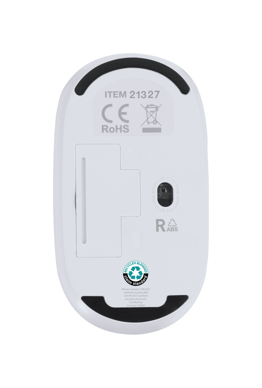 Kabellose optische Maus aus recyceltem ABS-Kunststoff und Gehäuse aus recyceltem Aluminium. Funktioniert mit 1AA-Batterie (exkl. Batterie).