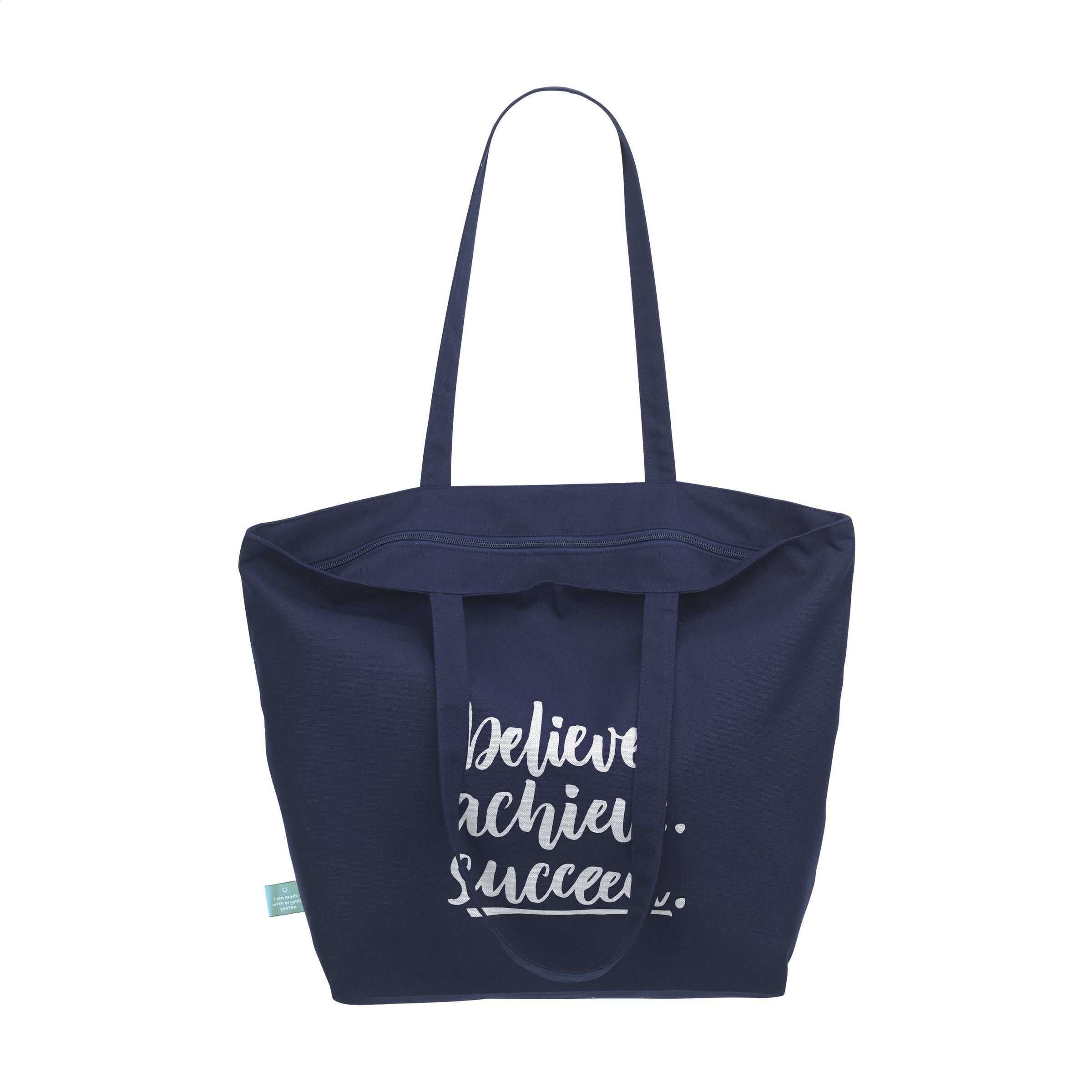 WoW! Recycelte Einkaufstasche mit langen Henkeln aus 100% fest gewebtem, extra schwerem Bio-Canvas (320 g / m²). Mit langen Griffe und Reißverschluss. Die großzügige, robuste Tasche bietet viel Platz. GOTS-zertifiziert. Fassungsvermögen ca. 28 Liter.
