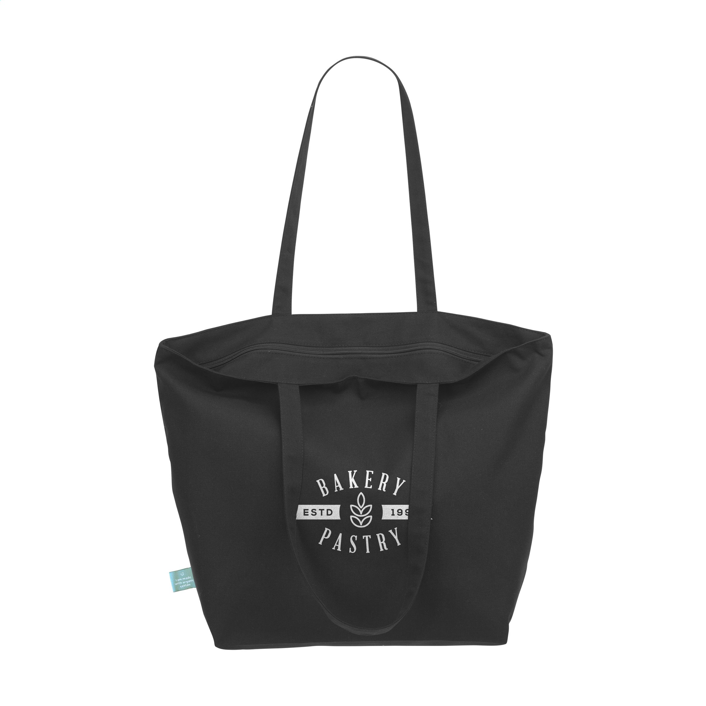 WoW! Recycelte Einkaufstasche mit langen Henkeln aus 100% fest gewebtem, extra schwerem Bio-Canvas (320 g / m²). Mit langen Griffe und Reißverschluss. Die großzügige, robuste Tasche bietet viel Platz. GOTS-zertifiziert. Fassungsvermögen ca. 28 Liter.