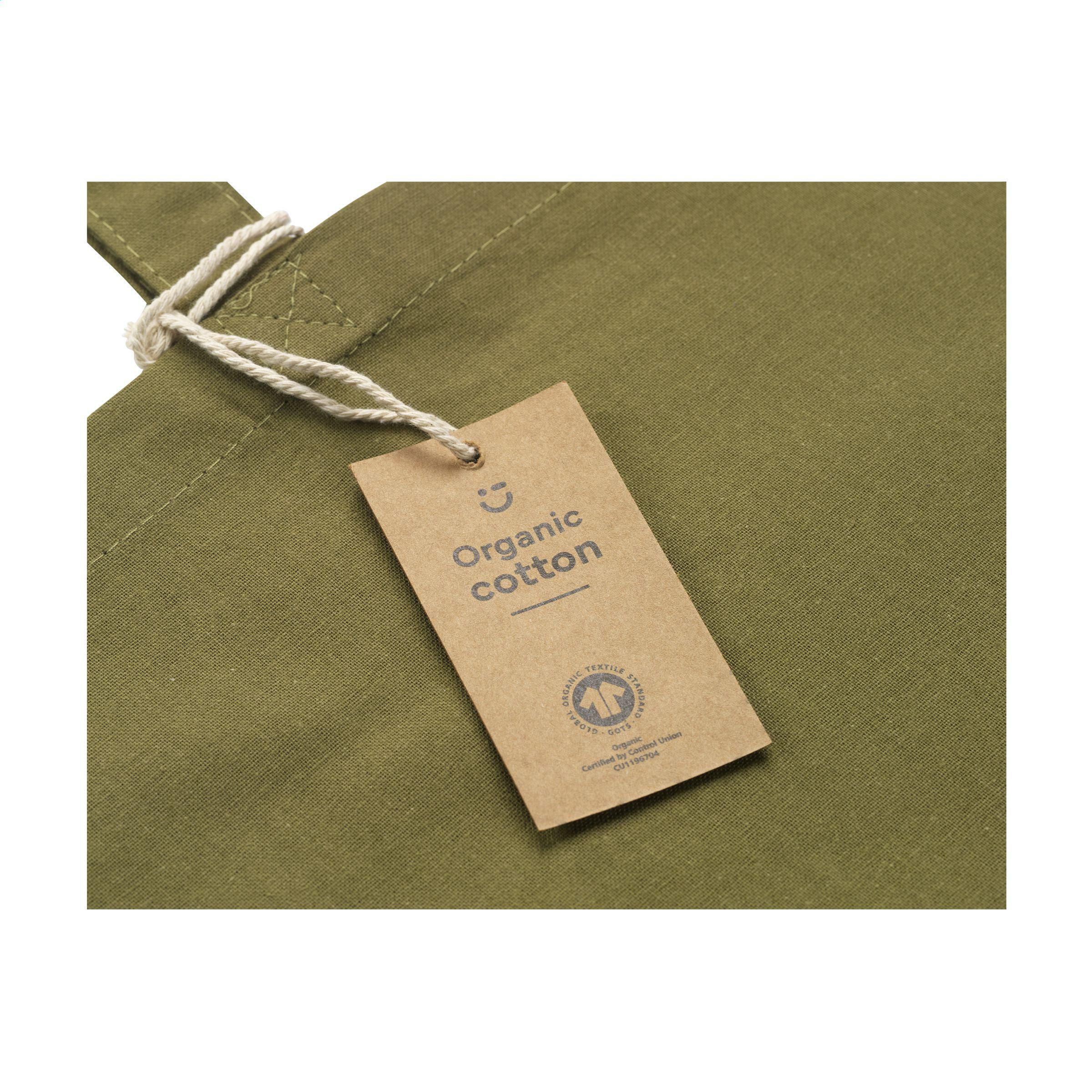 Robuste Einkaufstasche hergestellt aus 100% ökologischer Qualitätsbaumwolle (140 g/m²). Mit langen Henkeln. Fassungsvermögen ca. 8 Liter.
