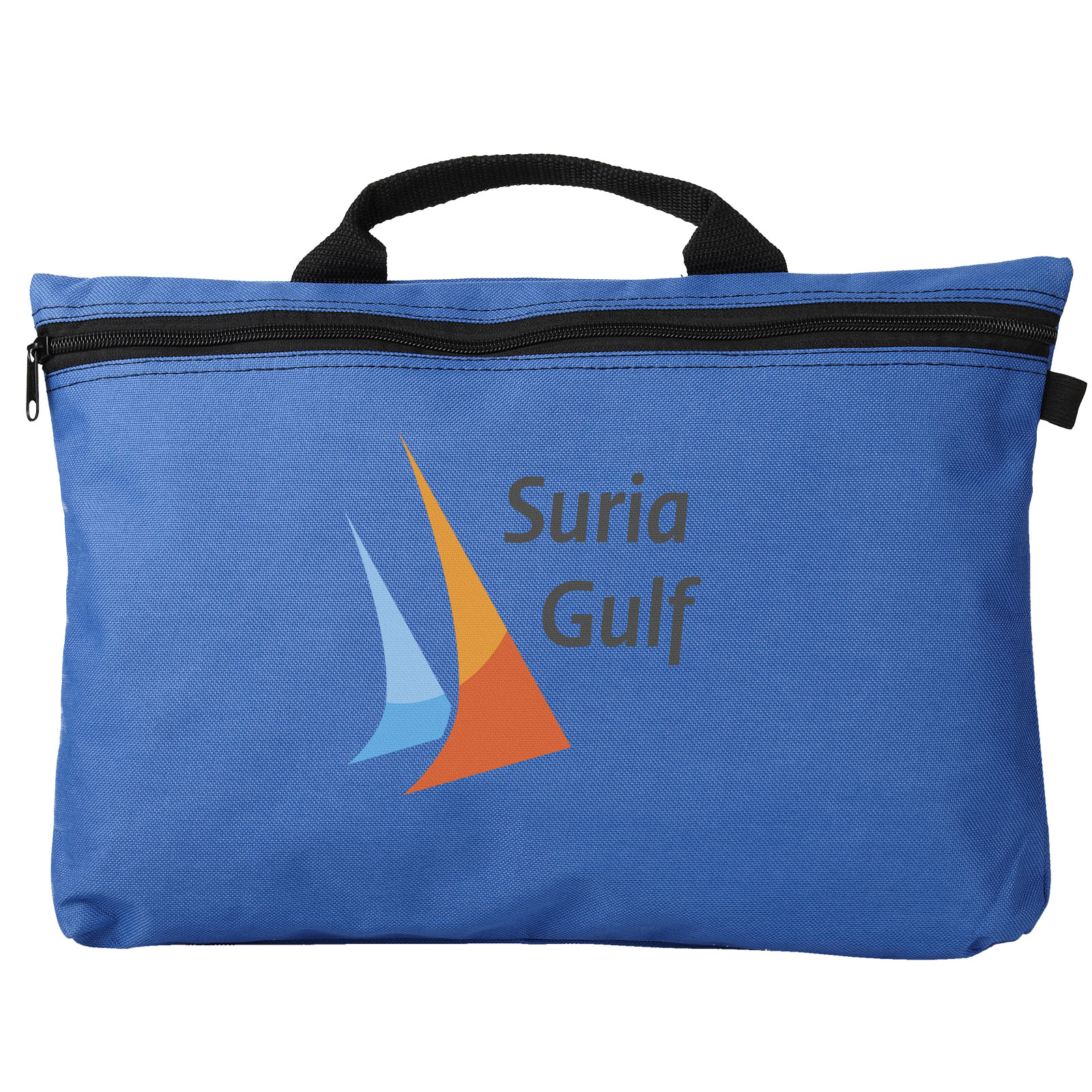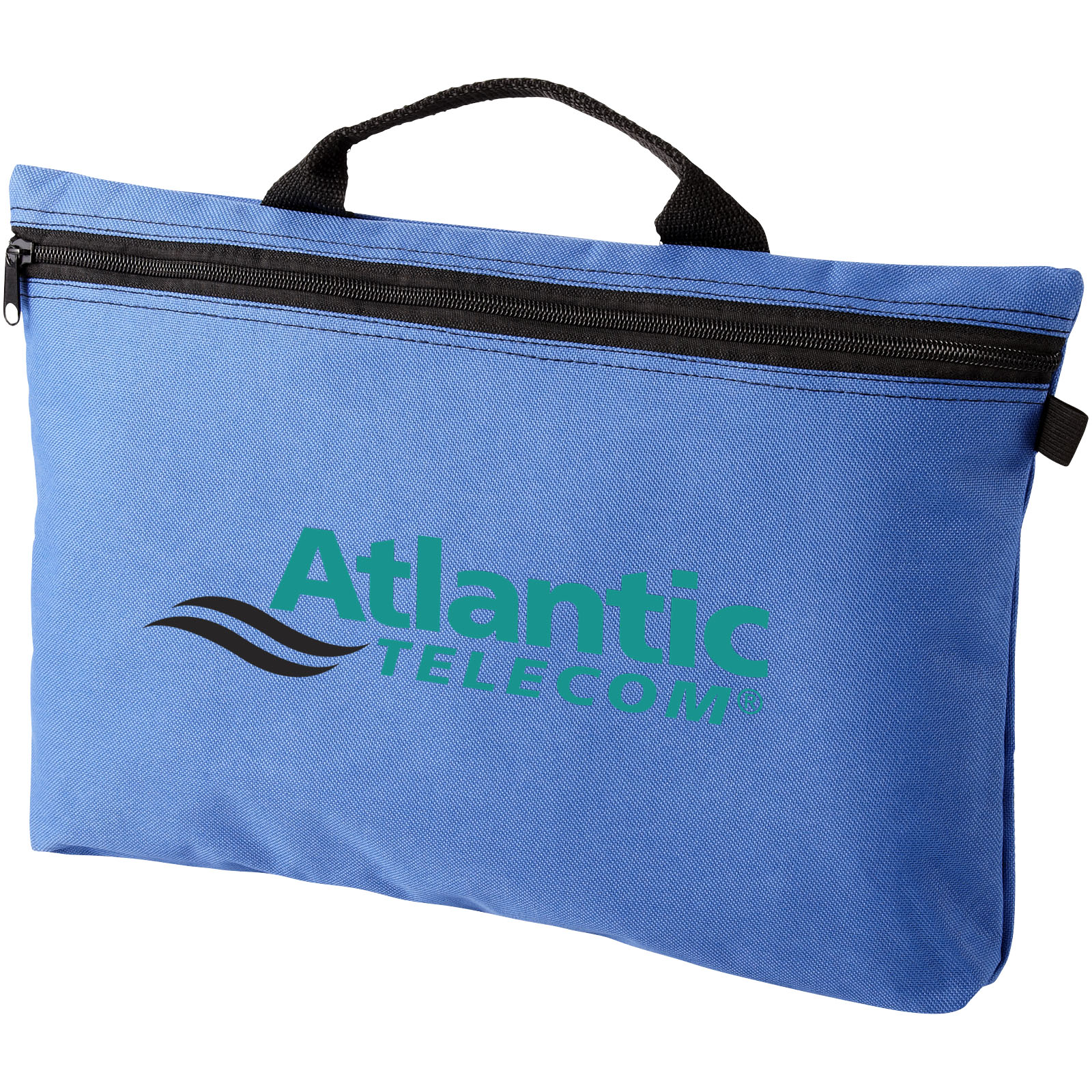 Die Konferenztasche Orlando ist ein Produkt, das dank der großen Druckfläche auf Konferenzen, Messen und anderen Veranstaltungen die Blicke auf sich ziehen kann. Orlando ist aus robustem, vielseitigem 600D-Polyester gefertigt, lässt sich mit einem Reißverschluss öffnen und schließen und verfügt über eine praktische Stiftschlaufe an der Außenseite der Tasche. Sie bietet ausreichend Platz für Unterlagen bis zum Format A4 und lässt sich außerdem mit dem Tragegriff leicht transportieren.