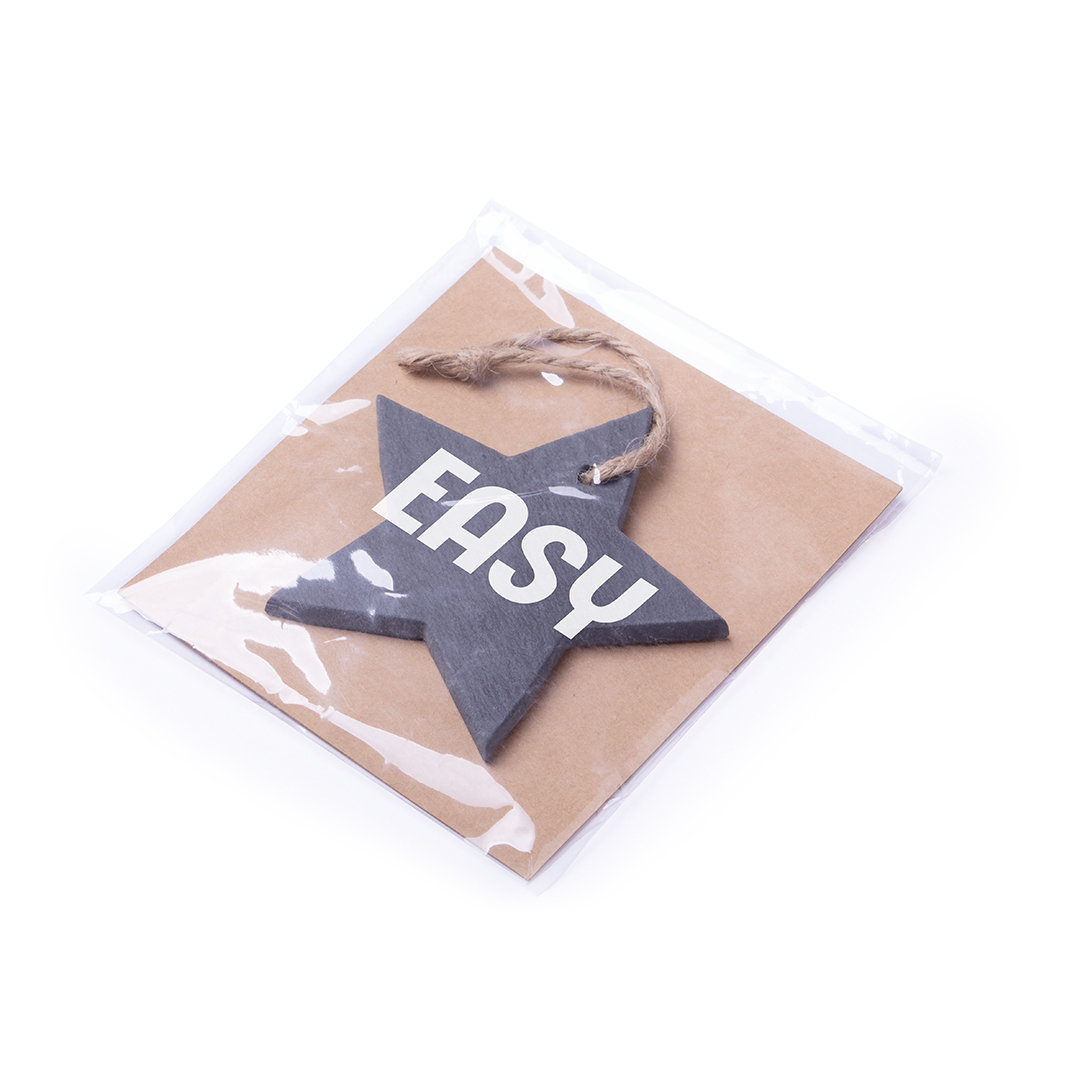 Weihnachtsschmuck aus Schiefer, mit Band zum Aufhängen und im eleganten Weihnachtsbaum- und Sterndesign.