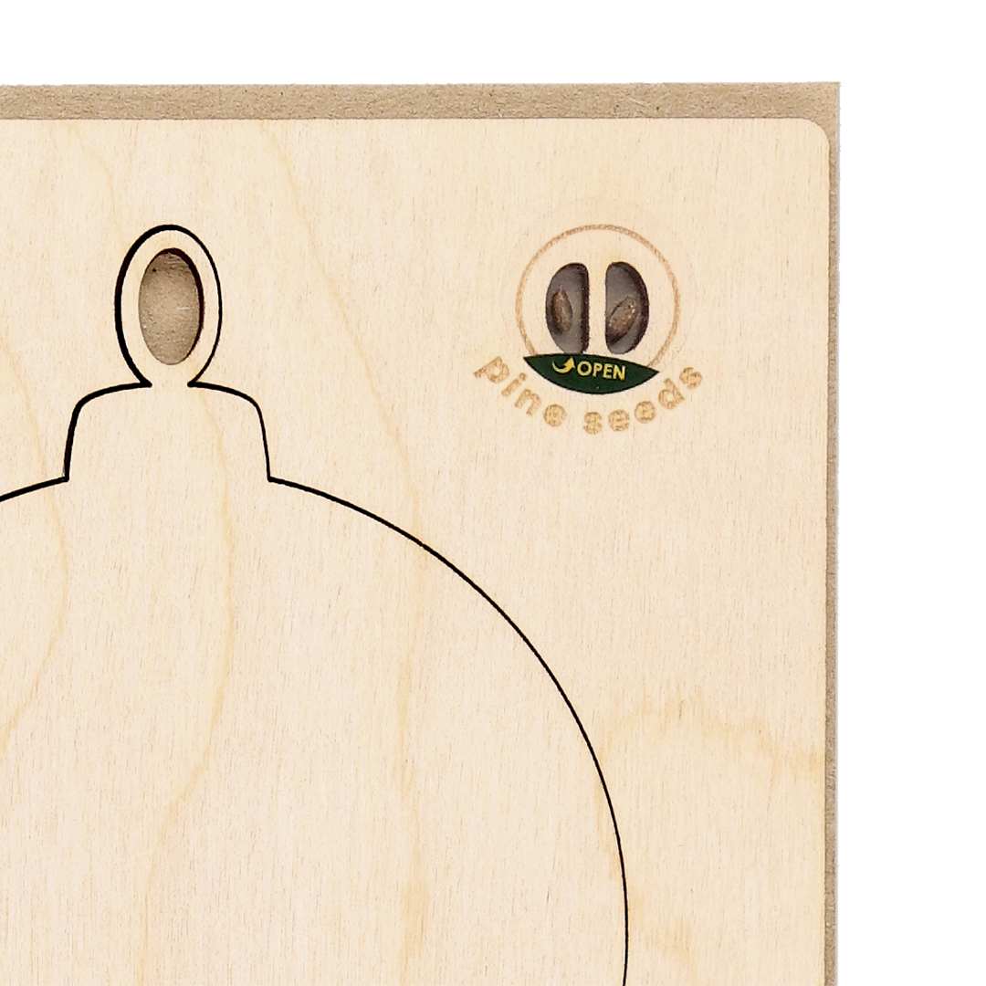 Nachhaltiges und originelles Weihnachtskarten-Set mit Kiefersamen, ein umweltfreundliches und überraschendes Geschenk. Inhalt:Postkarte aus Kraftpapier. Weihnachtskugel aus Naturholz mit Stanzung innen. Integrierte Kiefersamenkapsel. Hergestellt aus pflanzlichen Elementen zur Förderung der Nutzung natürlicher Rohstoffe und zur Reduzierung der Schadstoffemissionen.