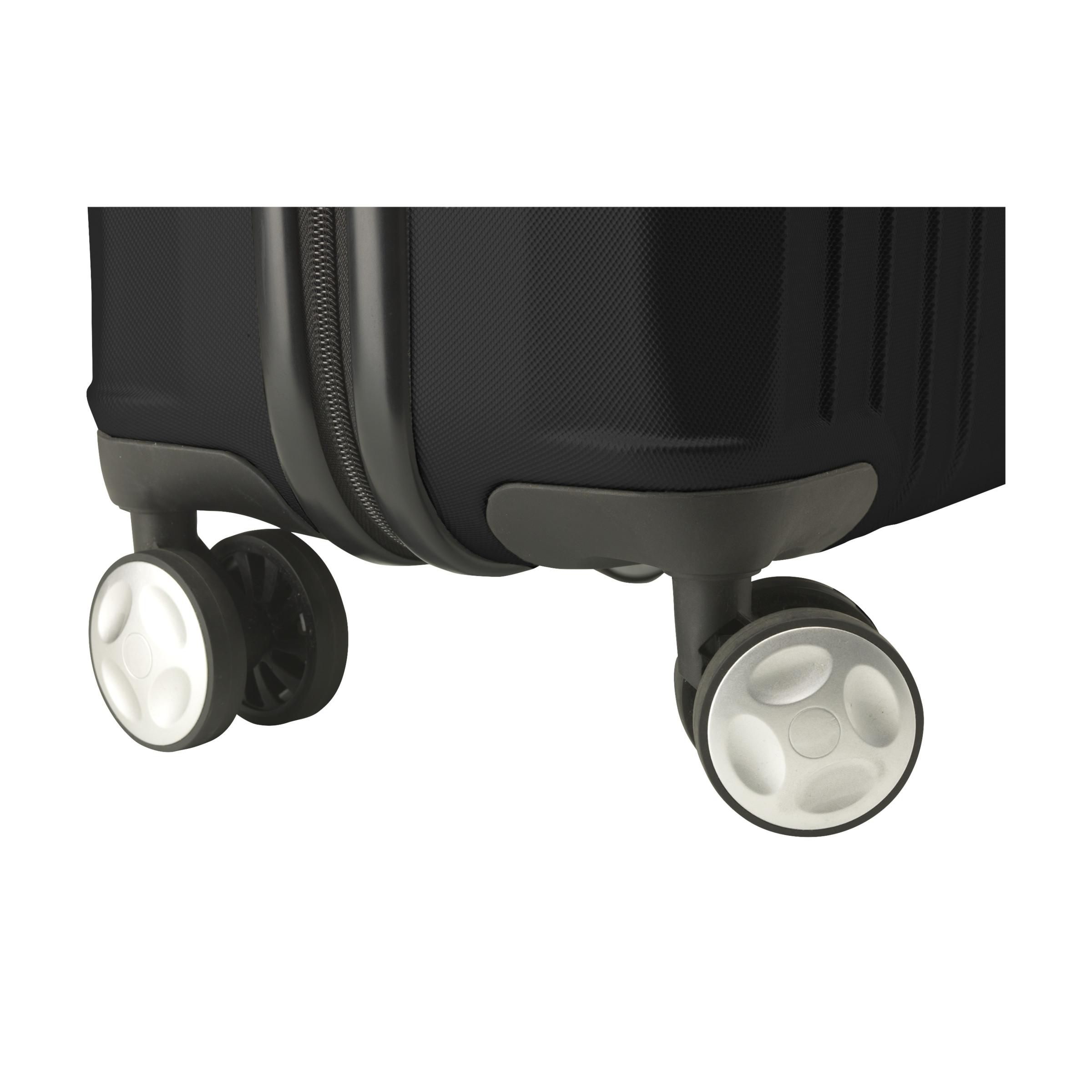 Trendiger, leichter Trolley aus 100% ABS in Metalloptik. Mit geräumigem Hauptfach, 4 Doppelrädern, erweitertem Metallgriff und Schloss. Capacity approx. 35 litres.