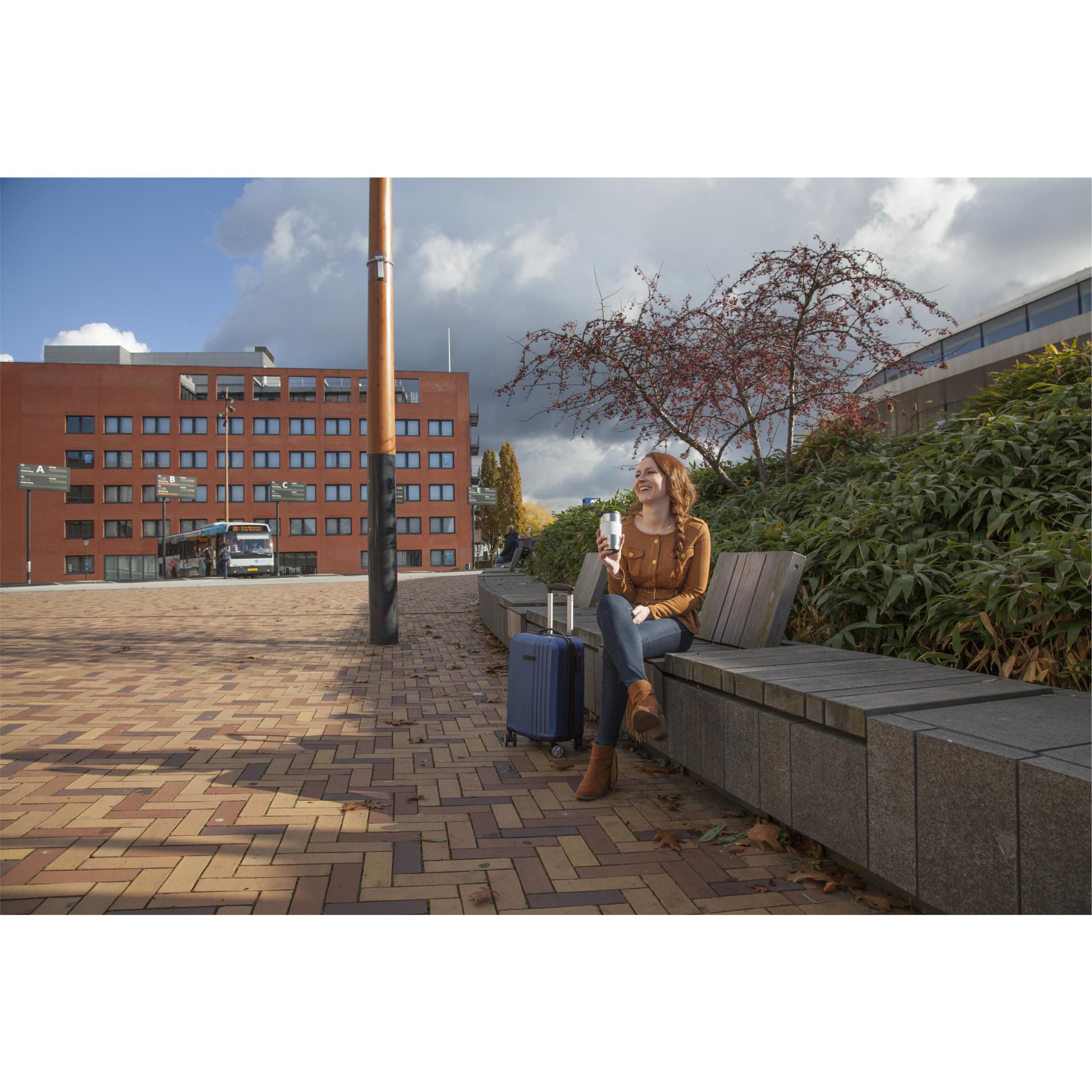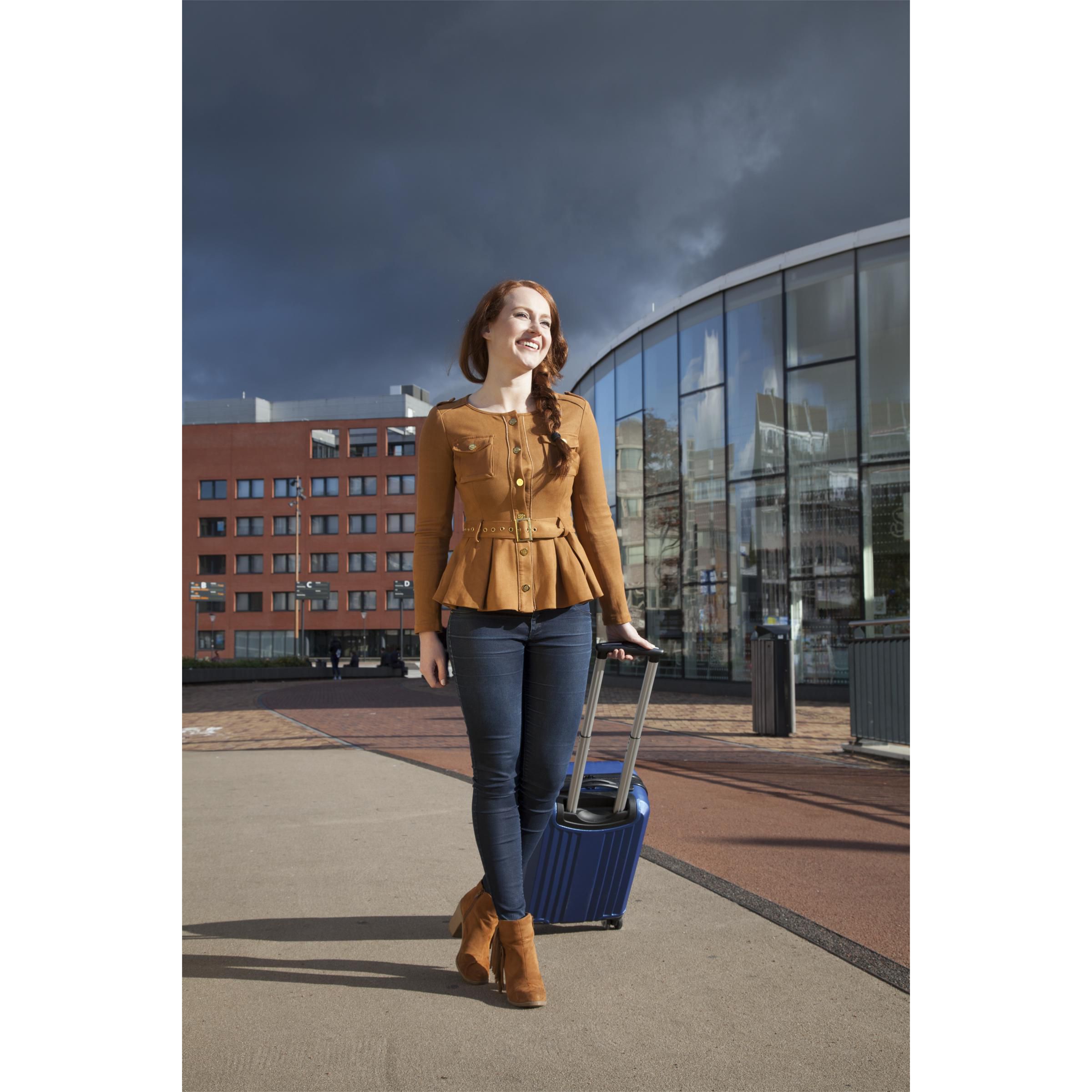 Trendiger, leichter Trolley aus 100% ABS in Metalloptik. Mit geräumigem Hauptfach, 4 Doppelrädern, erweitertem Metallgriff und Schloss. Capacity approx. 35 litres.