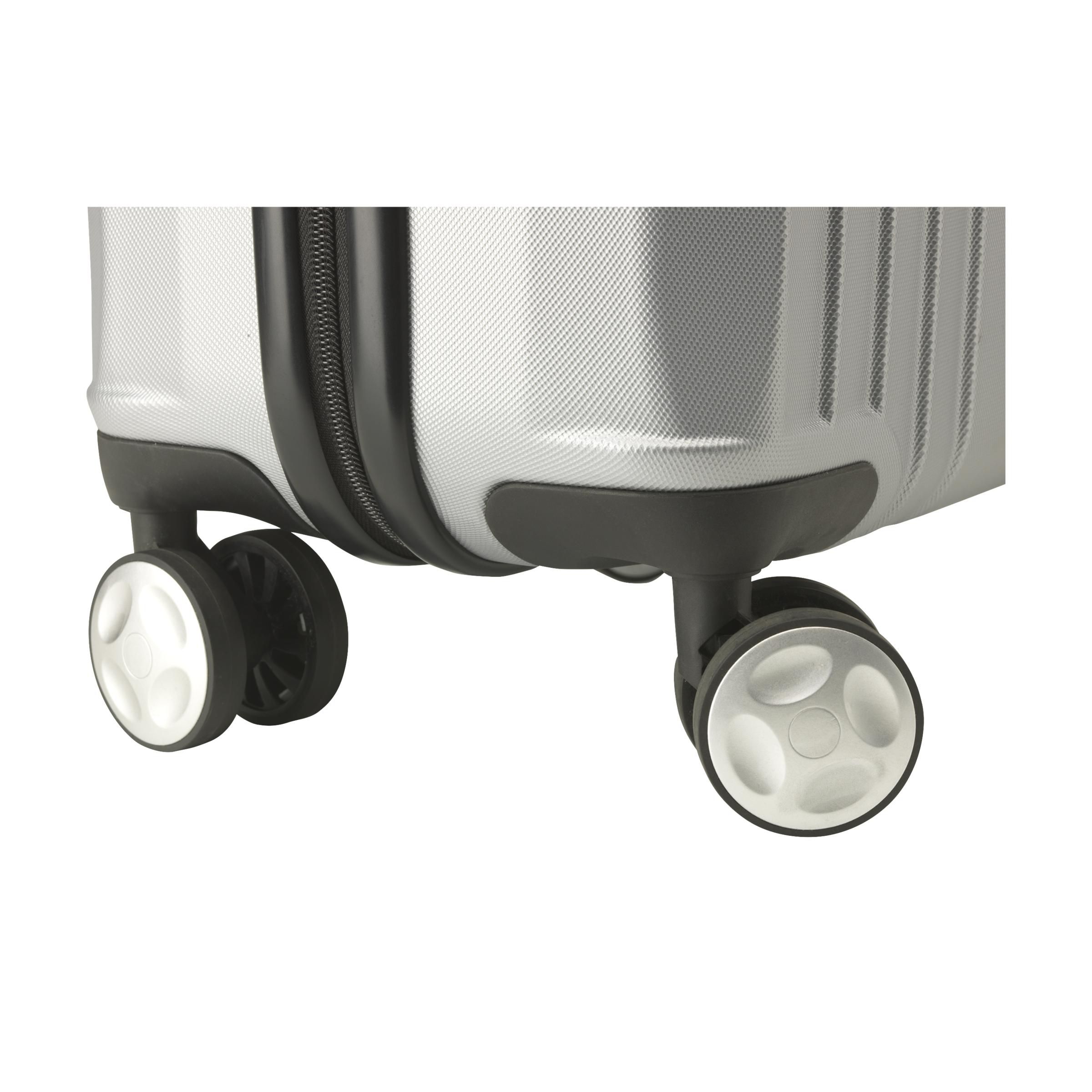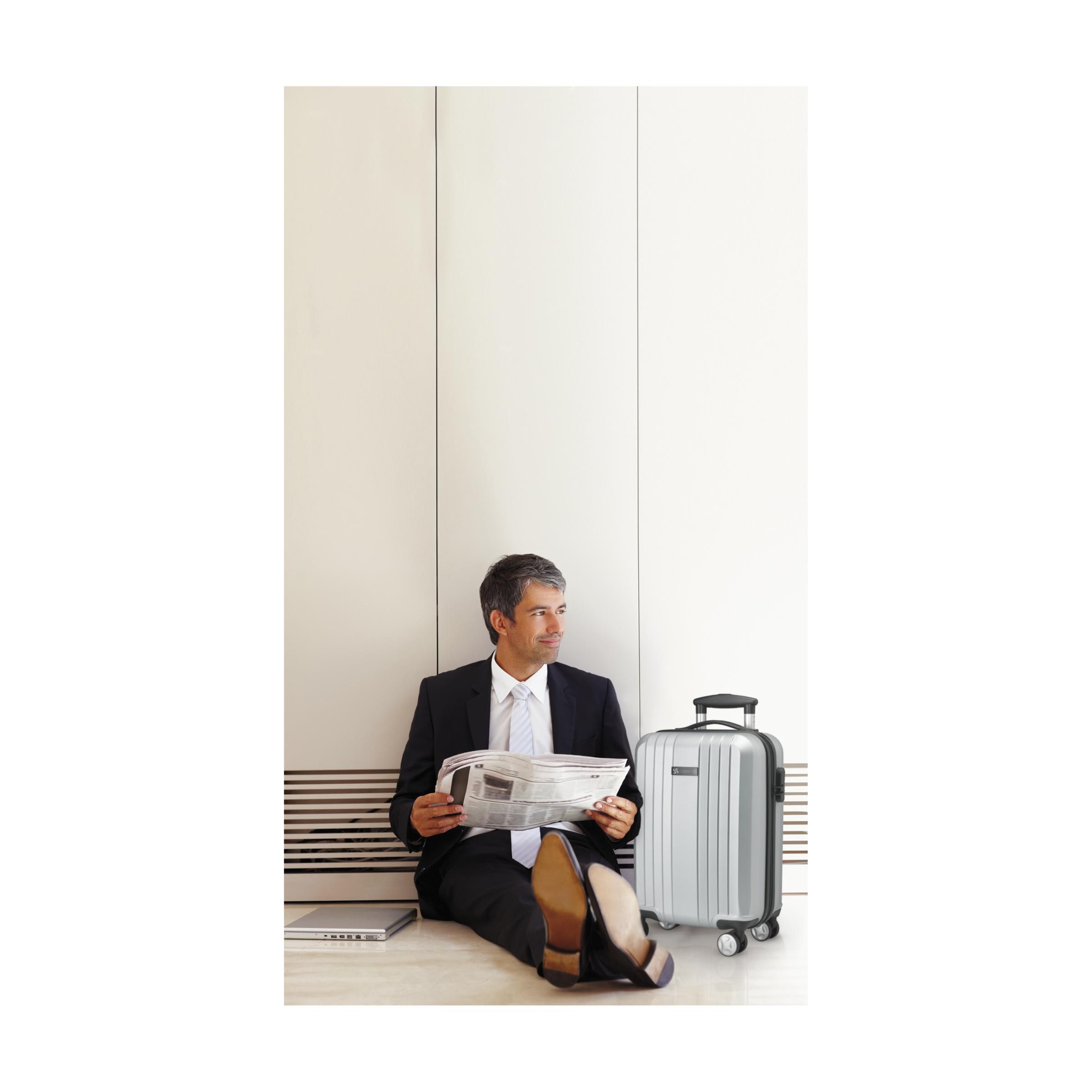 Trendiger, leichter Trolley aus 100% ABS in Metalloptik. Mit geräumigem Hauptfach, 4 Doppelrädern, erweitertem Metallgriff und Schloss. Capacity approx. 35 litres.