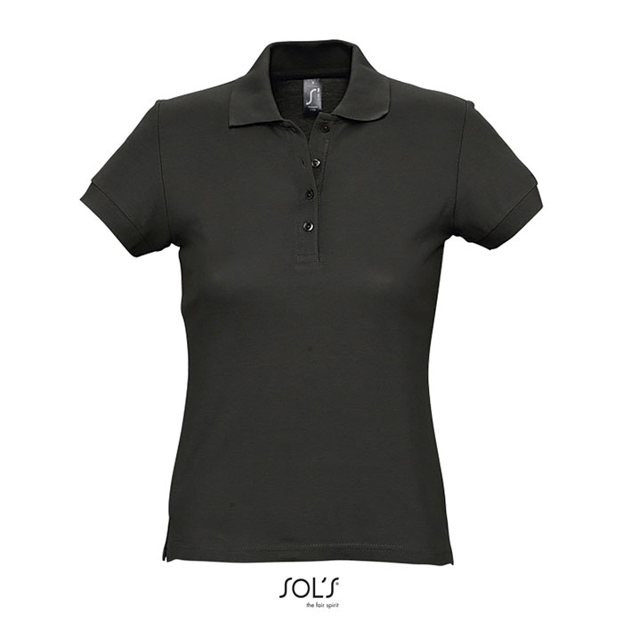 SOL'S PASSION Damen Polo-Piqué. Große Farbauswahl. Stylischer Damenschnitt. Rippkragen und -bündchen, Nackenband, Kurzarm, Seitennähte, Knopfleiste mit 4 farblich abgestimmten Knöpfen. Taillierter Schnitt, gerade am Saum mit Seitenschlitzen. Ersatzknopf innen. Material: 170g / m² in 100% gekämmter, ringgesponnener Baumwolle.