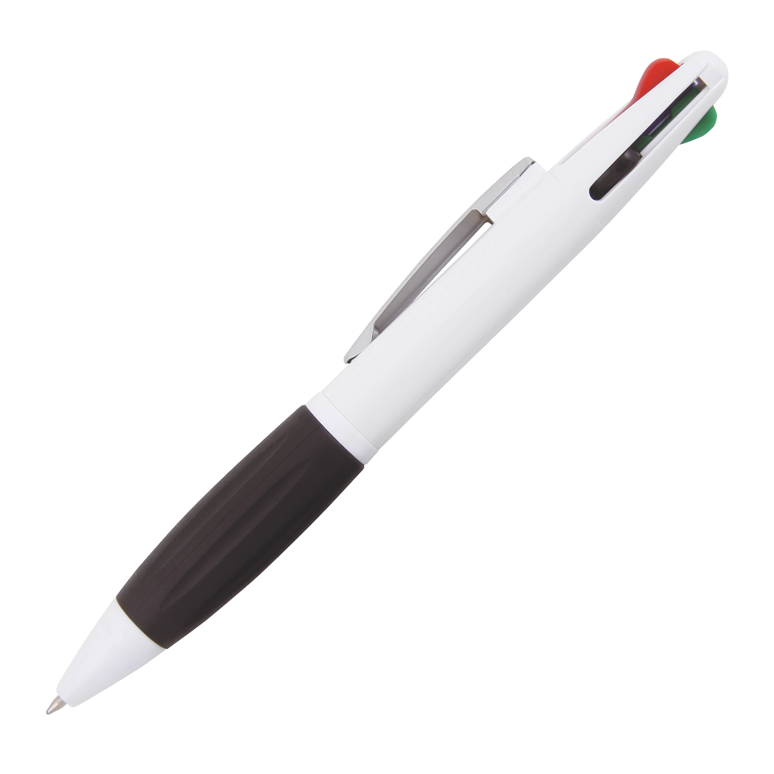 PAXI 4 Farben Kugelschreiber Peekay. Plastik schwarz-, rot-, blau- und grünschreibend, mit Metallclip