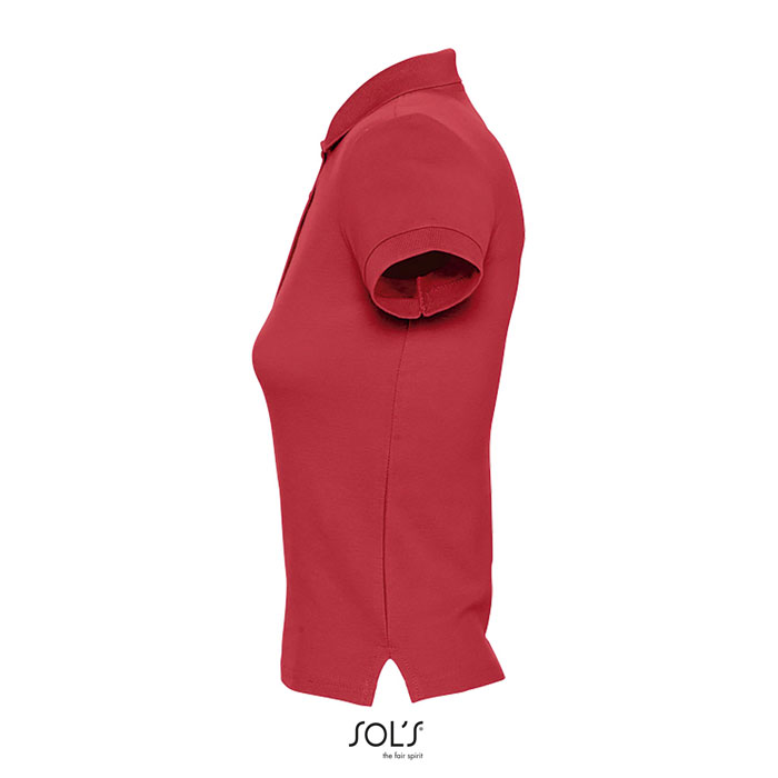 SOL'S PEOPLE Damen-Polo-Piqué. Schwerere Qualität. Rippkragen und - bündchen, Nackenband, Kurzarm, Seitennähte, Knopfleiste mit 4 farblich abgestimmten Knöpfen. Taillierter Schnitt, gerade am Saum mit Seitenschlitzen. Material: 210g / m² 100% gekämmte, ringgesponnene Baumwolle.