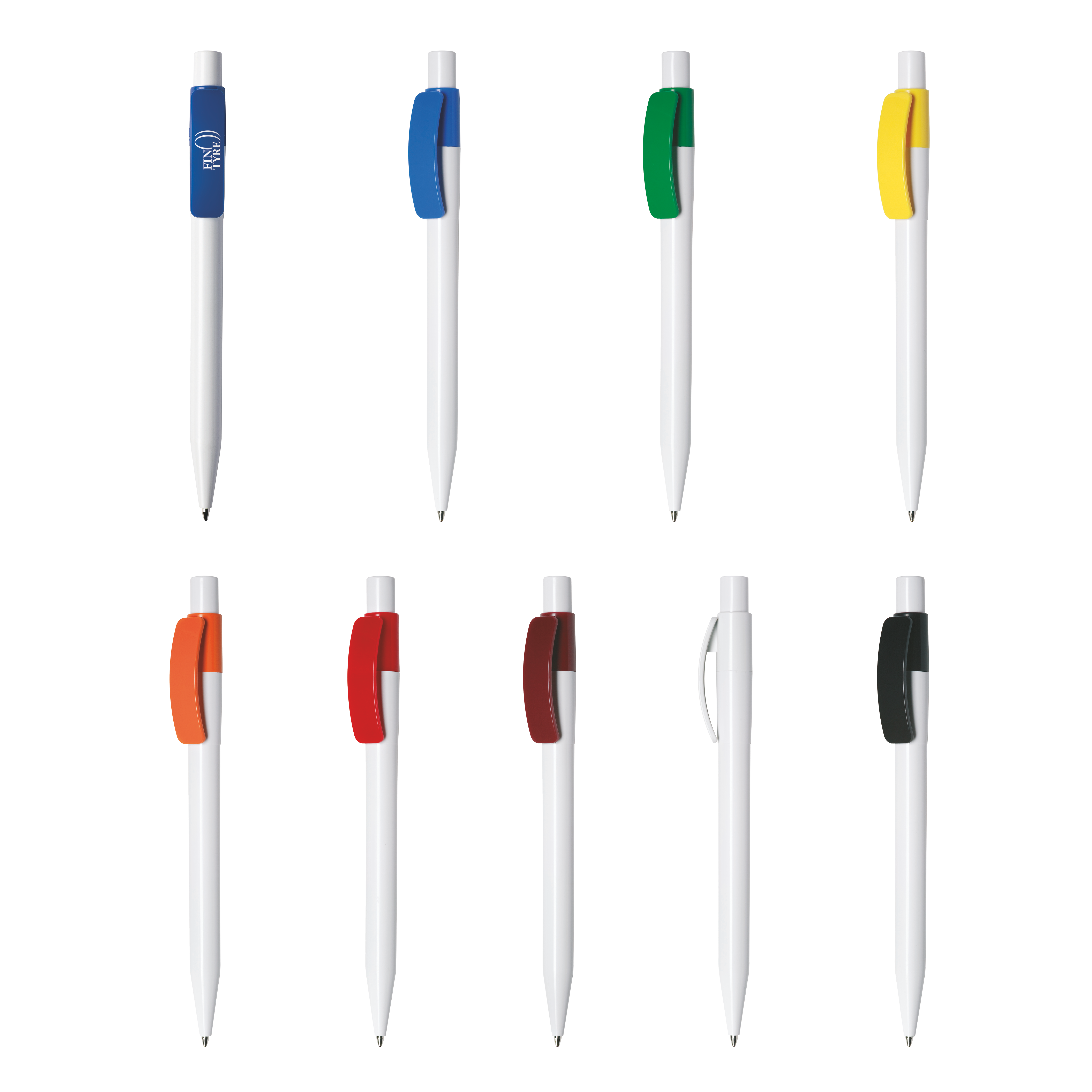 PIXEL PX40 B Kugelschreiber Maxema, Ob schlicht oder gewagt - die elegante Linie des neuen PIXEL ist allen Modetrends gewachsen !Die fließende Linie seines weißen Gehäuses aus hochglänzendem ABS, kombiniert mit einem farbigen Clip, bietet Ihrer Werbung eine optimale Fläche. Das Clipteil ist in 9 unterschiedlichen Farben lieferbar. Der Kugelschreiber ist mit einer blauschreibenden X-20 Mine ausgestattet.