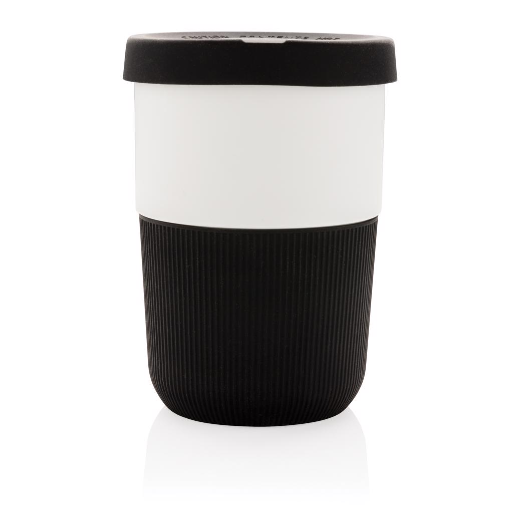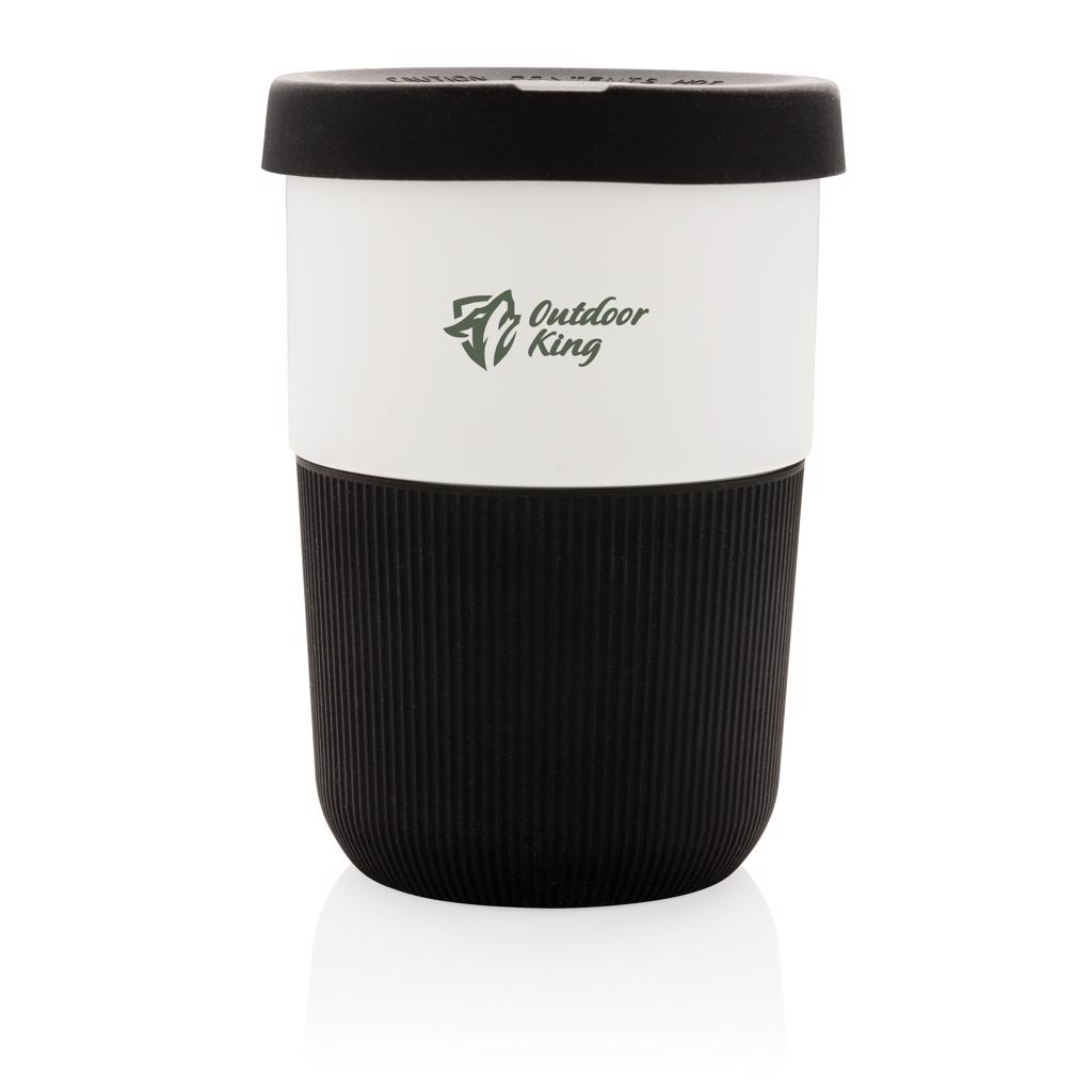 Die nachhaltige Alternative zu herkömmlichen Bechern! Dieser PLA Kaffeebecher ist aus Pflanzenmaterial ( PLA), also nicht nur stylisch sondern auch gut für unsere Erde. Mit Silikongriffschutz und -deckel. 100% Melaminfrei. Inhalt: 380ml.
