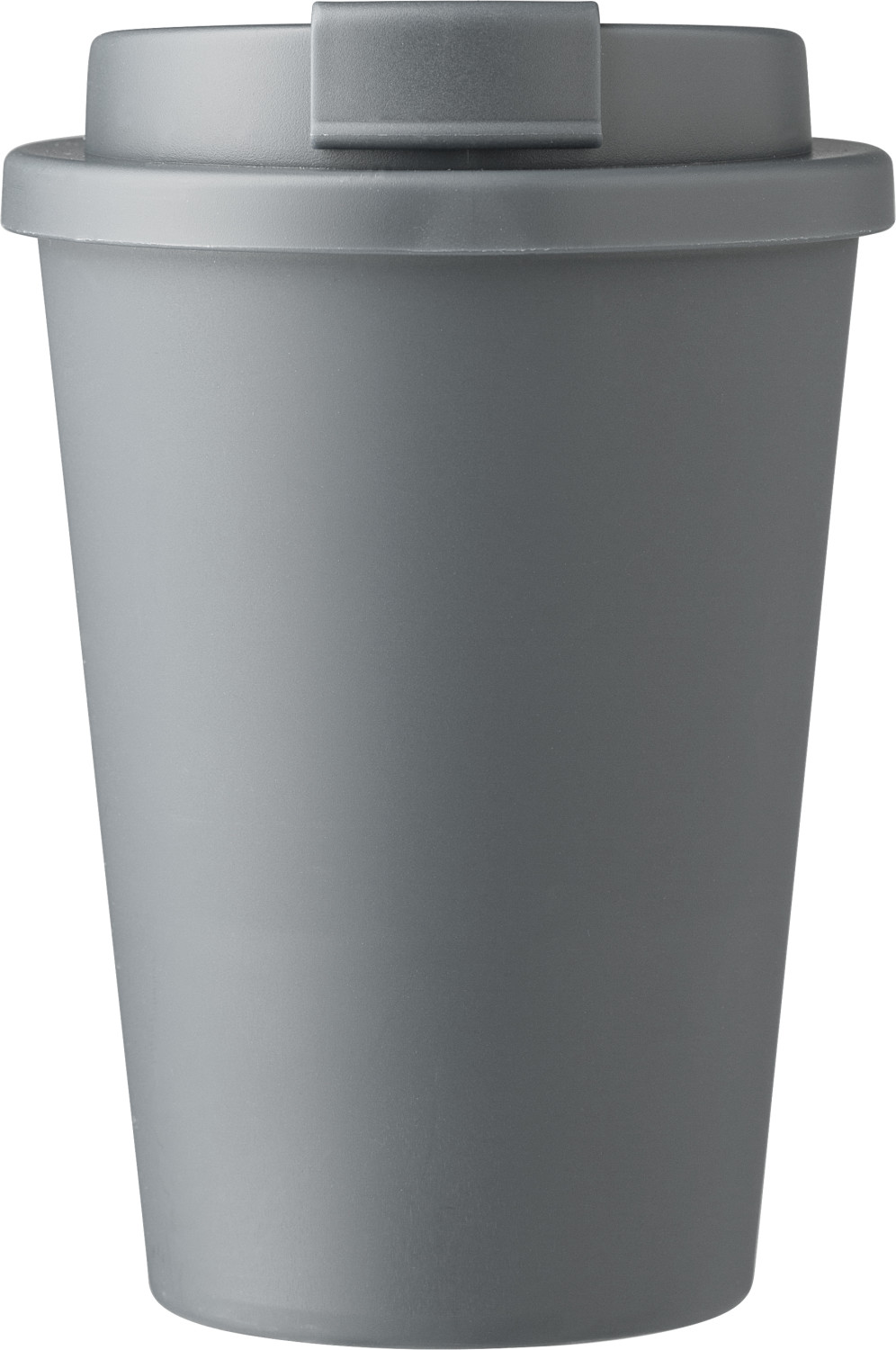 PP-To-go-Becher (350 ml) mit Schraubdeckel. Mit verschließbarer Trinköffnung. Er ist sowohl für heiße als auch für kalte Getränke geeignet.