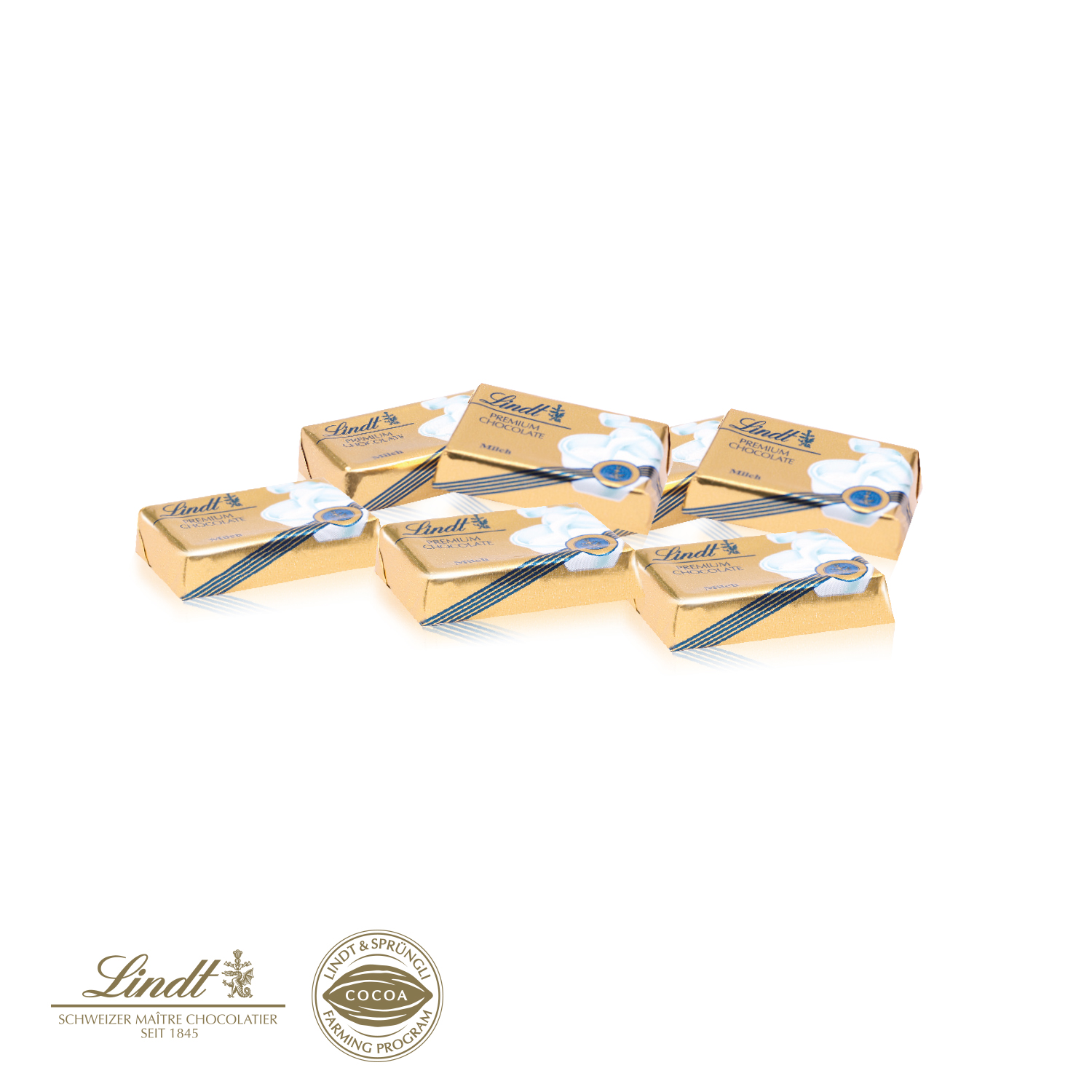 6 Schokotäfelchen (ca. 30 g) "Vollmilch" von Lindt.