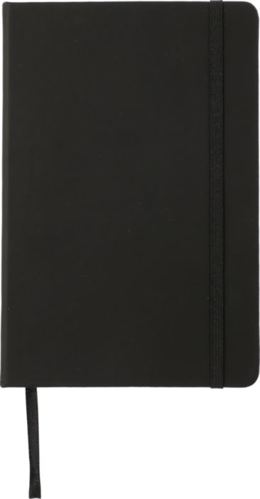 Notizbuch aus PU (ca. A5) mit 96 karierten Seiten im 5 mm Raster ohne Rahmen. Mit Lesebändchen und Gummizug am Einband.