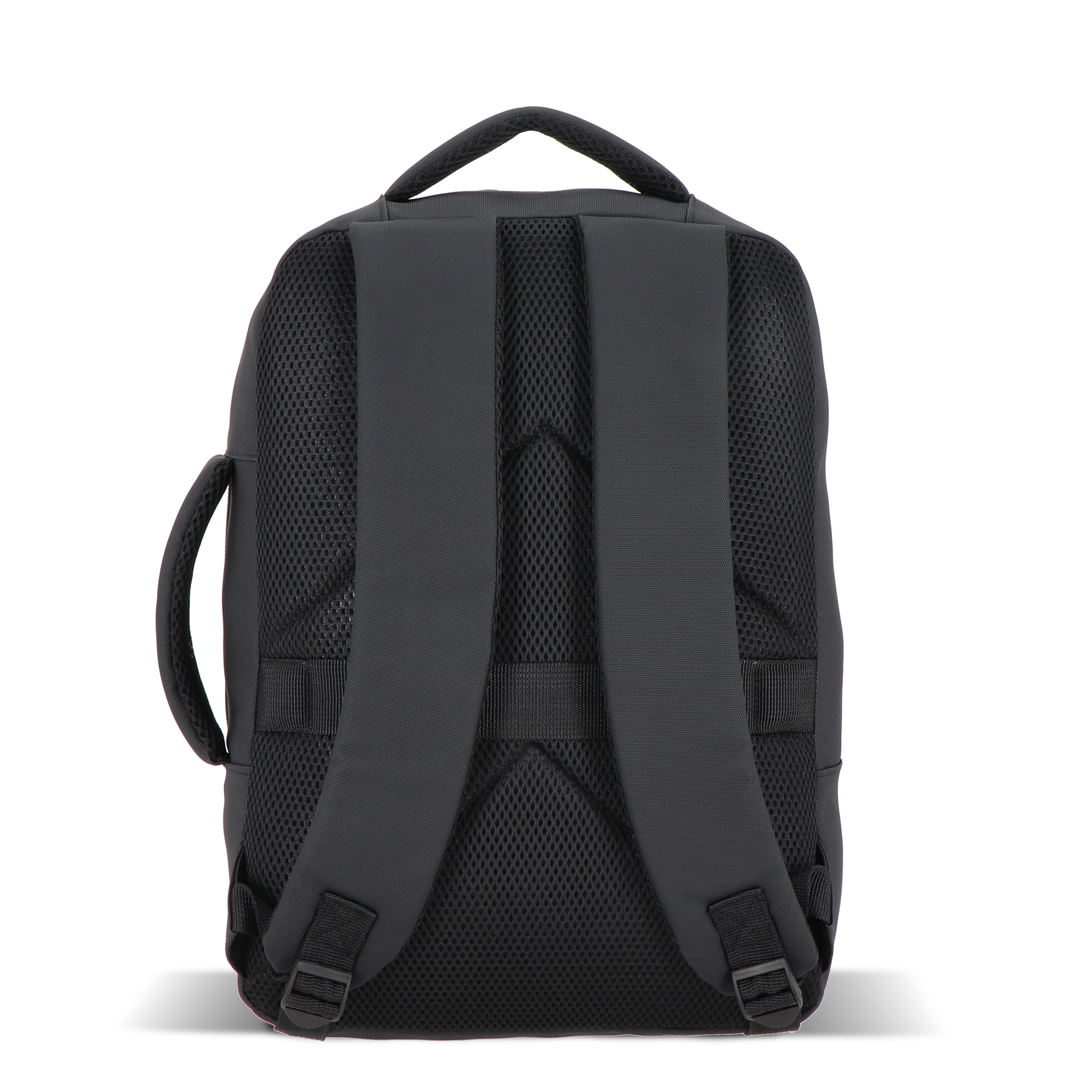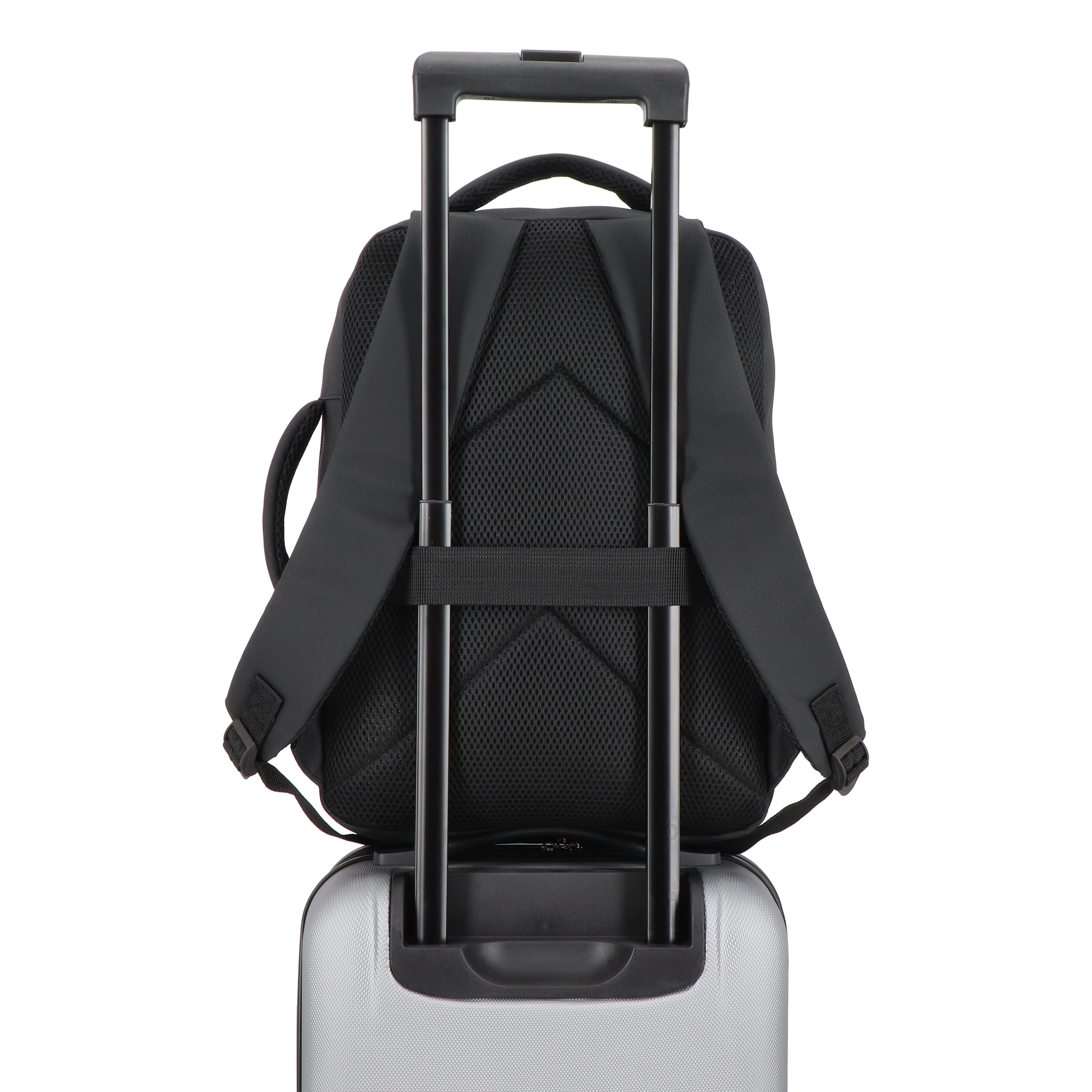 PU-Laptop-Rucksack mit 210D-Futter für 15,6-Zoll-Laptops. Mit gepolsterten, verstellbaren Trägern, Netzrücken, Griffen oben und an der Seite, Trolley-Gurt, reflektierenden Details, Reißverschlusstasche vorne, versteckter Tasche für Wertsachen und übersichtlichem Innenraum.