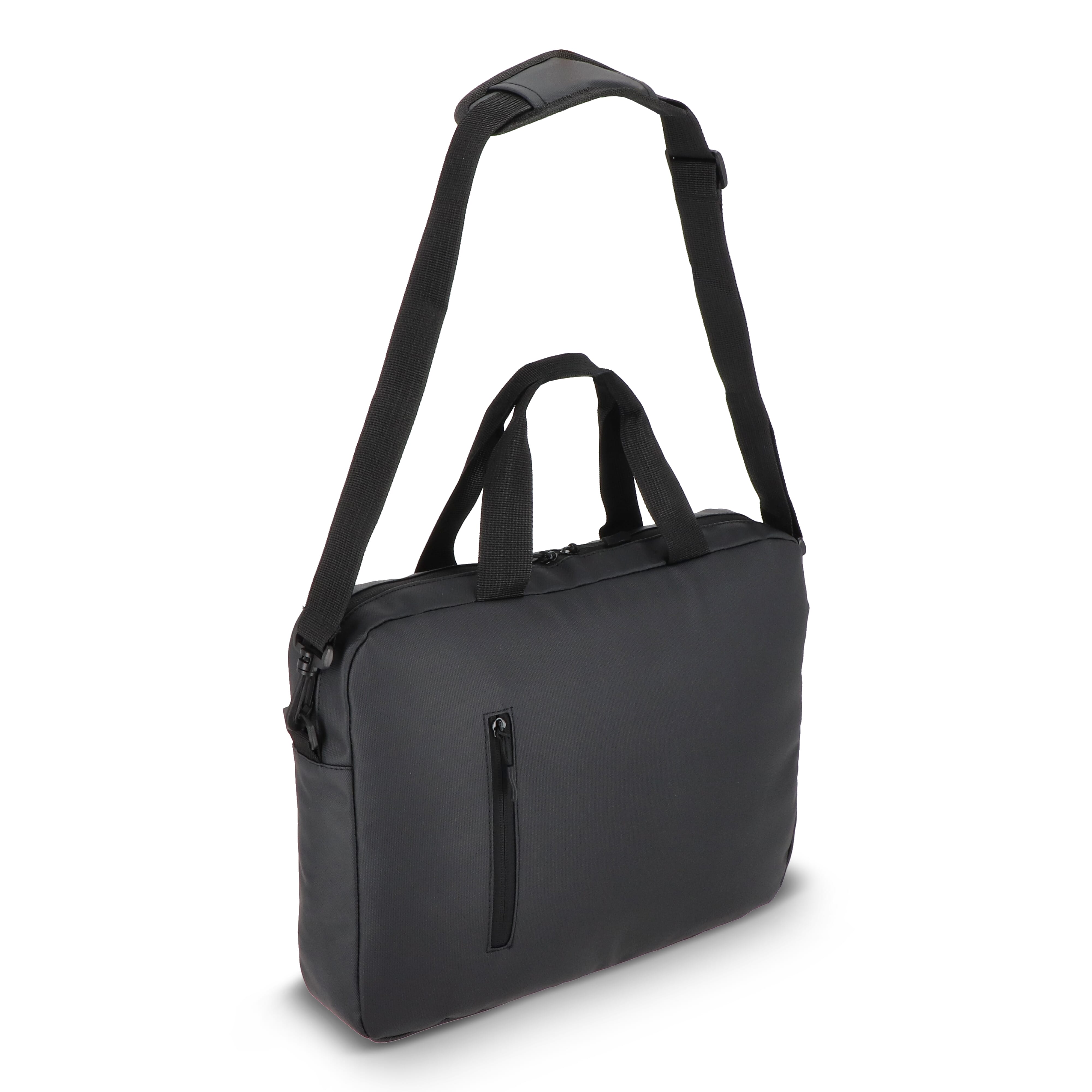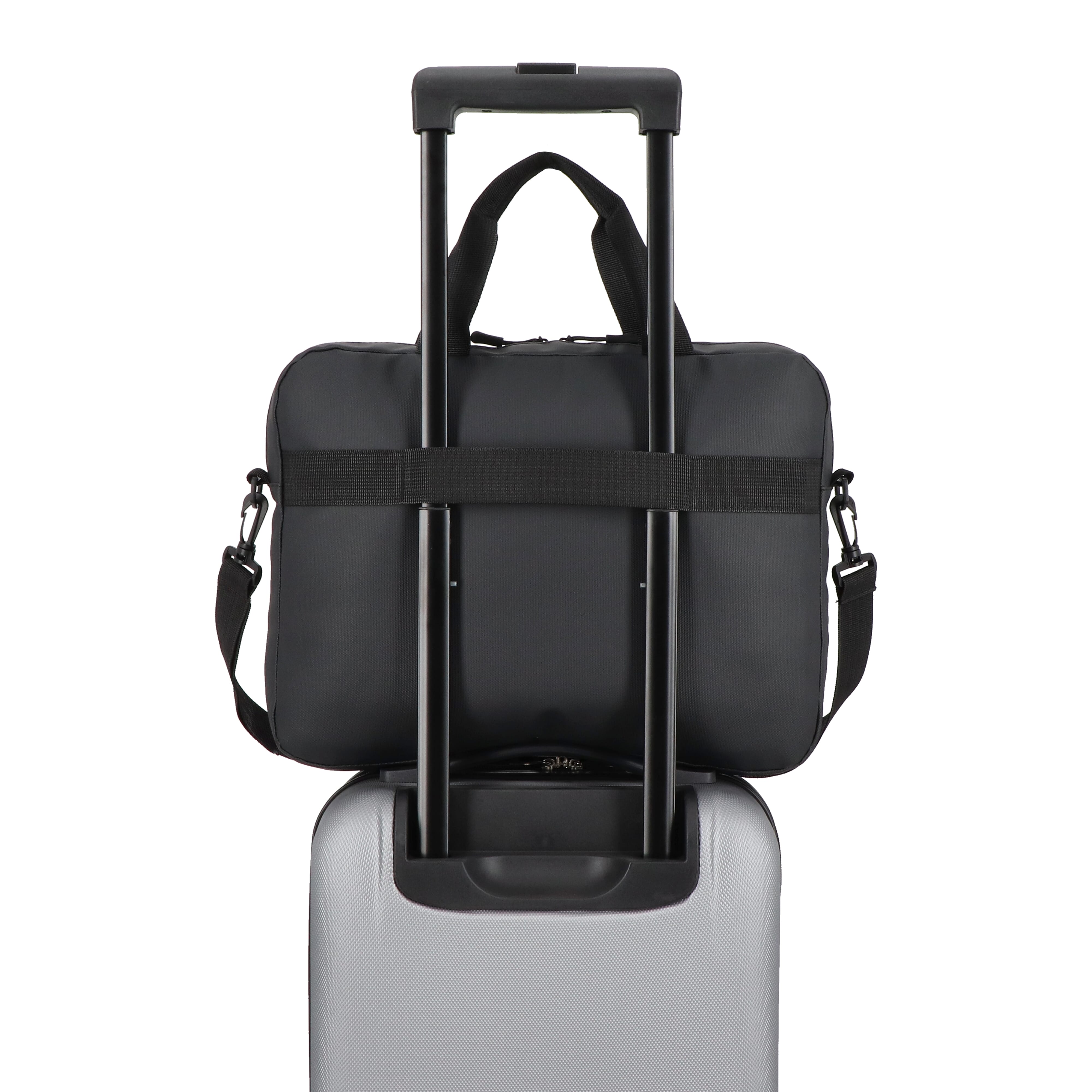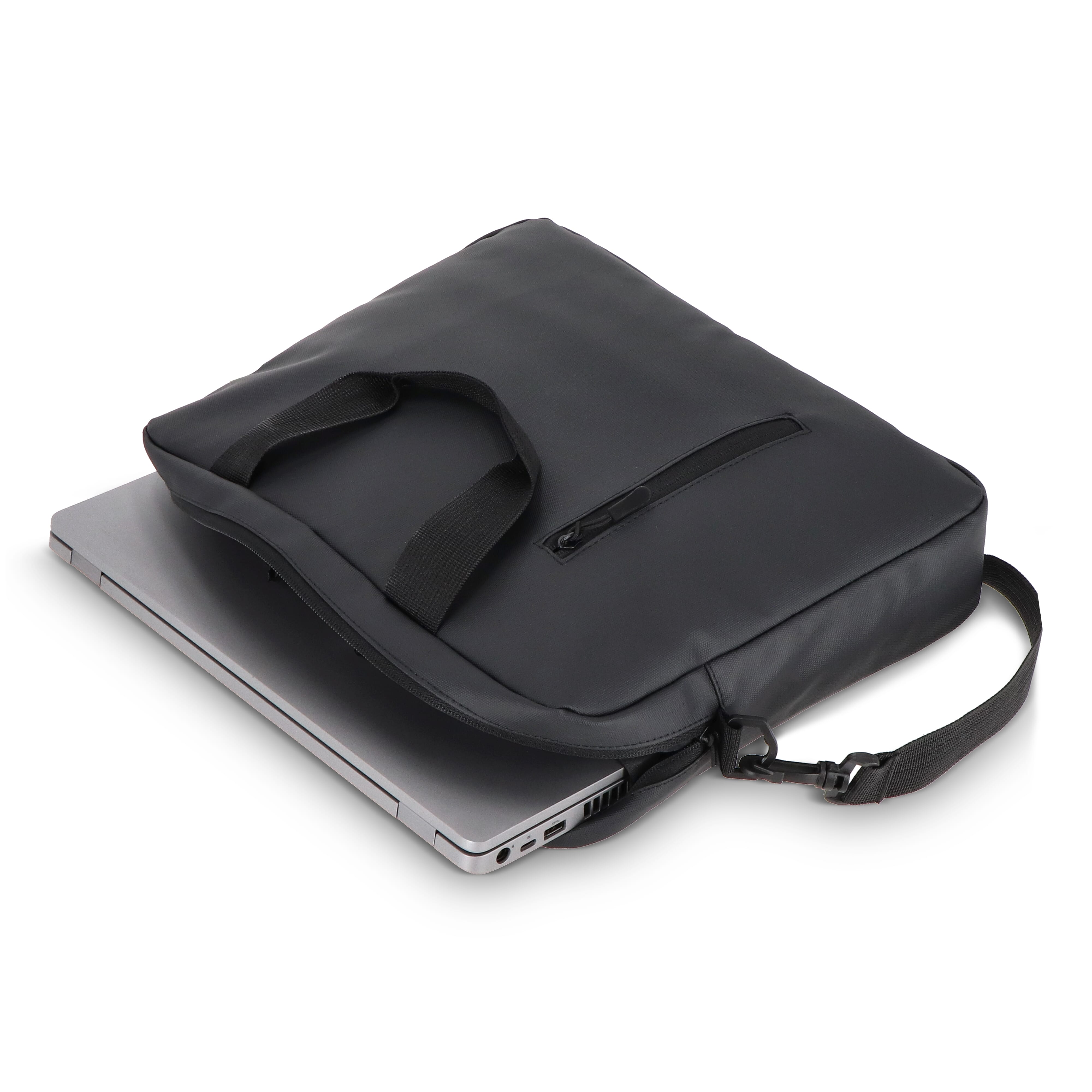 PU-Laptoptasche für bis zu 15,6-Zoll-Laptops mit 210D-Futter. Mit Fronttasche mit Reißverschluss, abnehmbarem Schultergurt, Trolley-Gurt auf der Rückseite, gepolstertem Laptopfach und kleiner gepolstertem Tasche für Wertsachen.