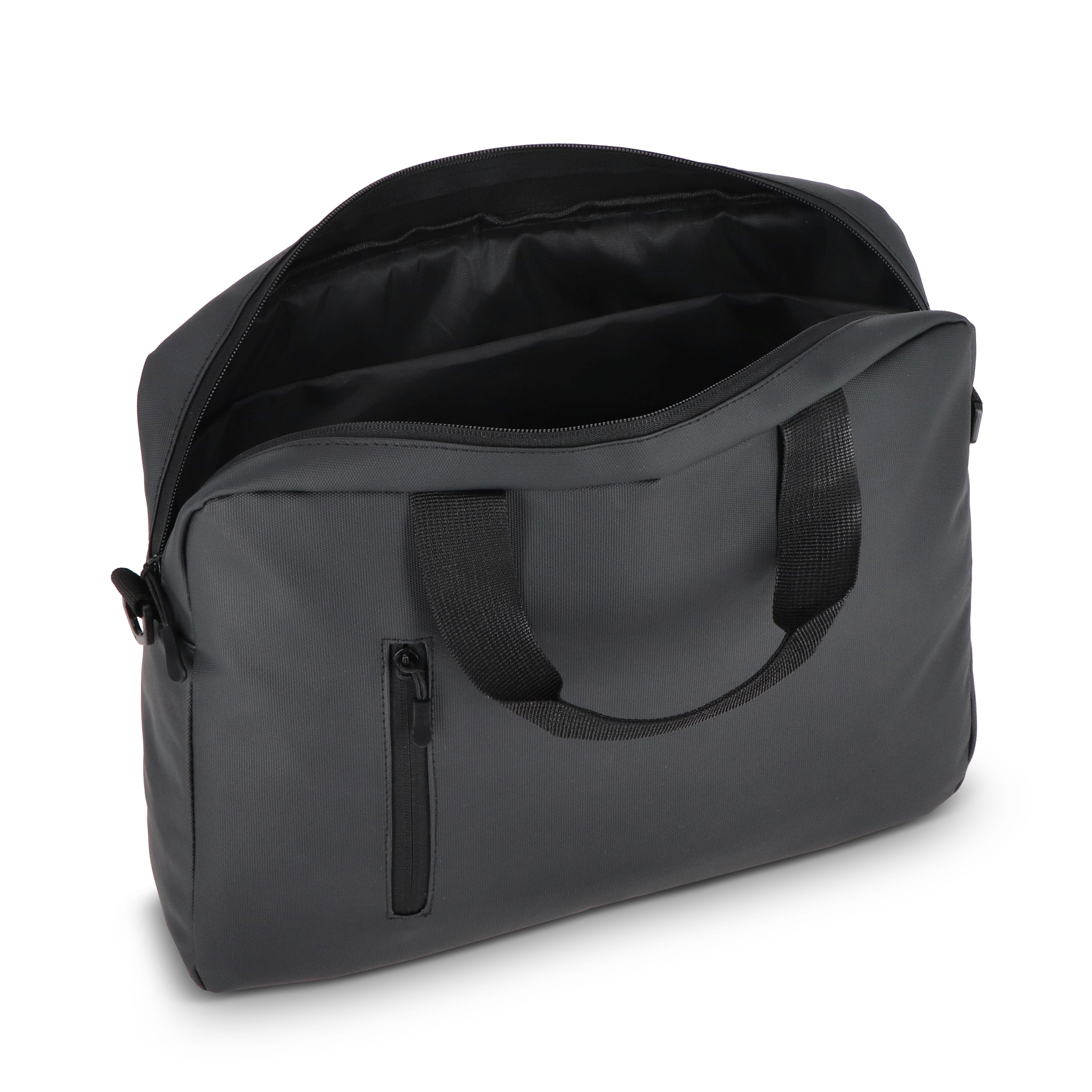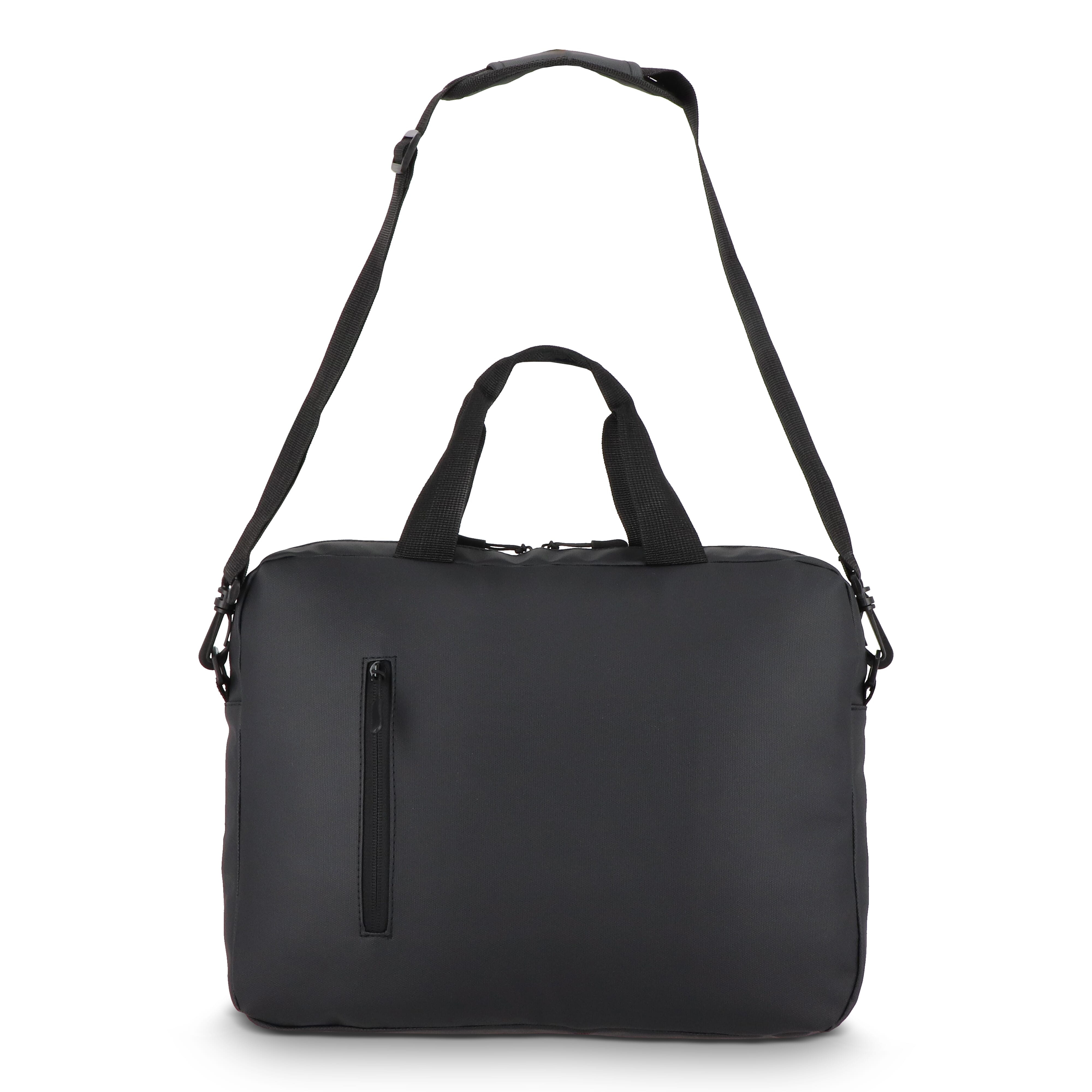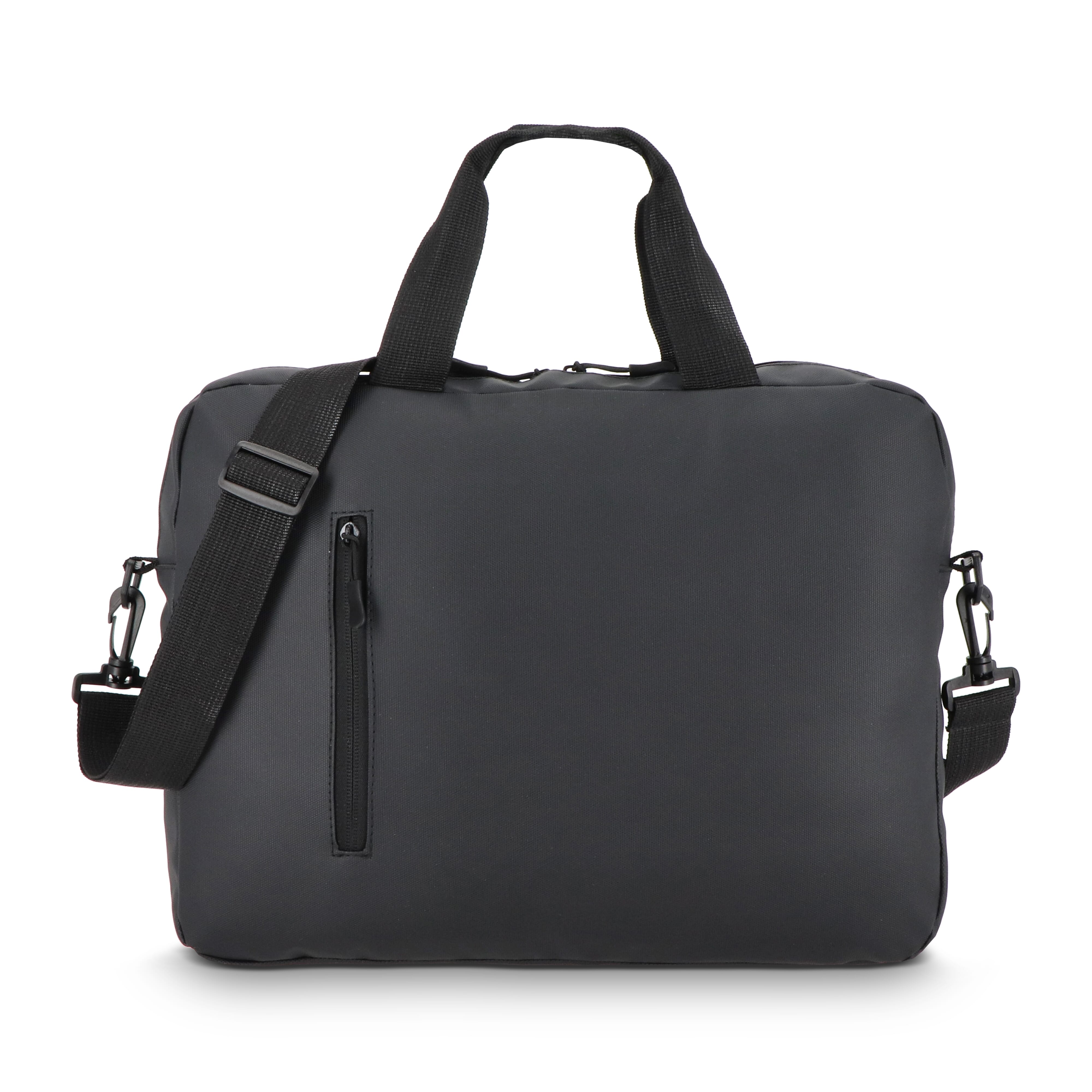 PU-Laptoptasche für bis zu 15,6-Zoll-Laptops mit 210D-Futter. Mit Fronttasche mit Reißverschluss, abnehmbarem Schultergurt, Trolley-Gurt auf der Rückseite, gepolstertem Laptopfach und kleiner gepolstertem Tasche für Wertsachen.