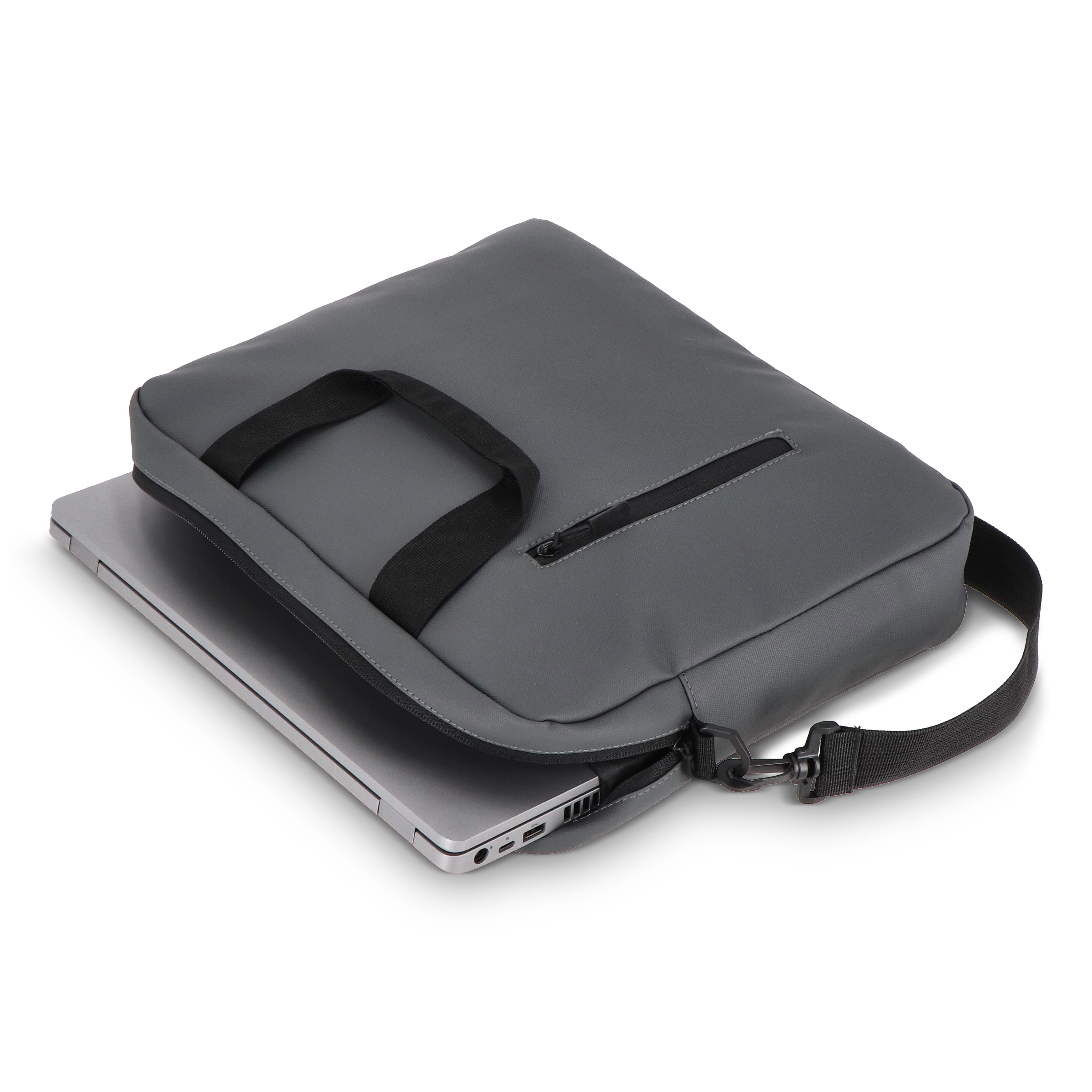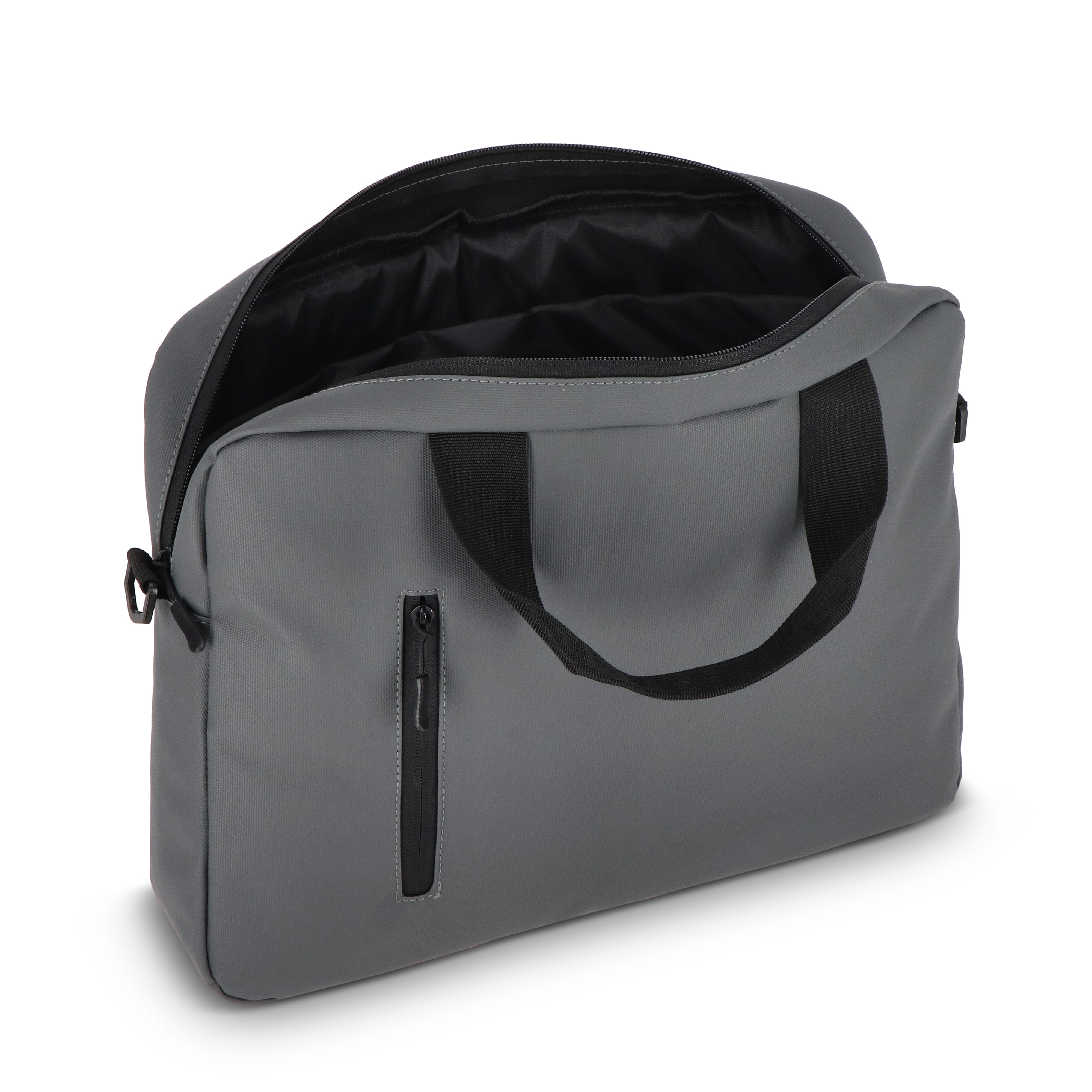 PU-Laptoptasche für bis zu 15,6-Zoll-Laptops mit 210D-Futter. Mit Fronttasche mit Reißverschluss, abnehmbarem Schultergurt, Trolley-Gurt auf der Rückseite, gepolstertem Laptopfach und kleiner gepolstertem Tasche für Wertsachen.
