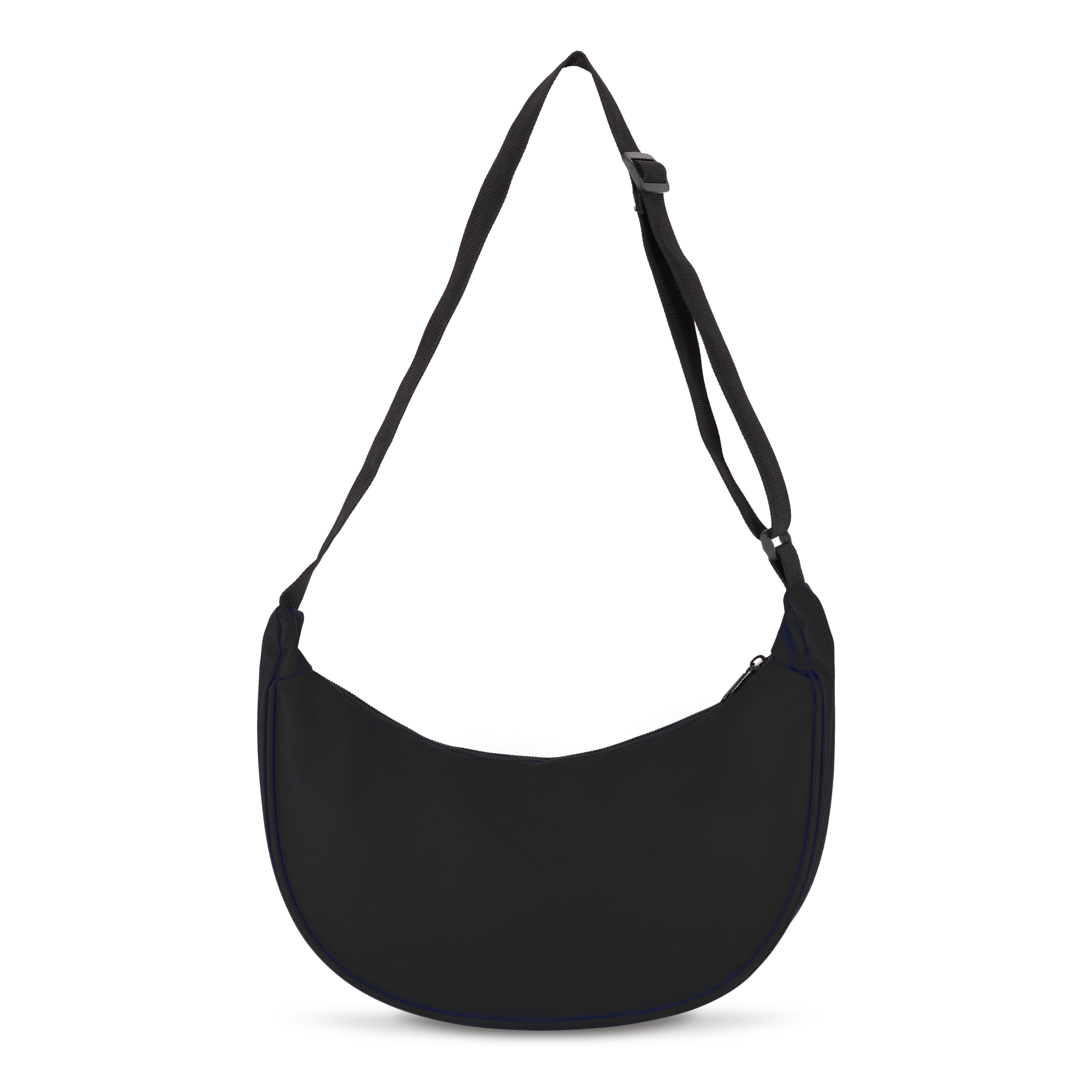 Diese Halbmond-Tasche aus PU-beschichtetem, recyceltem PET aus 600D-Material verfügt über einen verstellbaren Schultergurt und zwei Innentaschen für Zubehör zur geordneten Aufbewahrung.