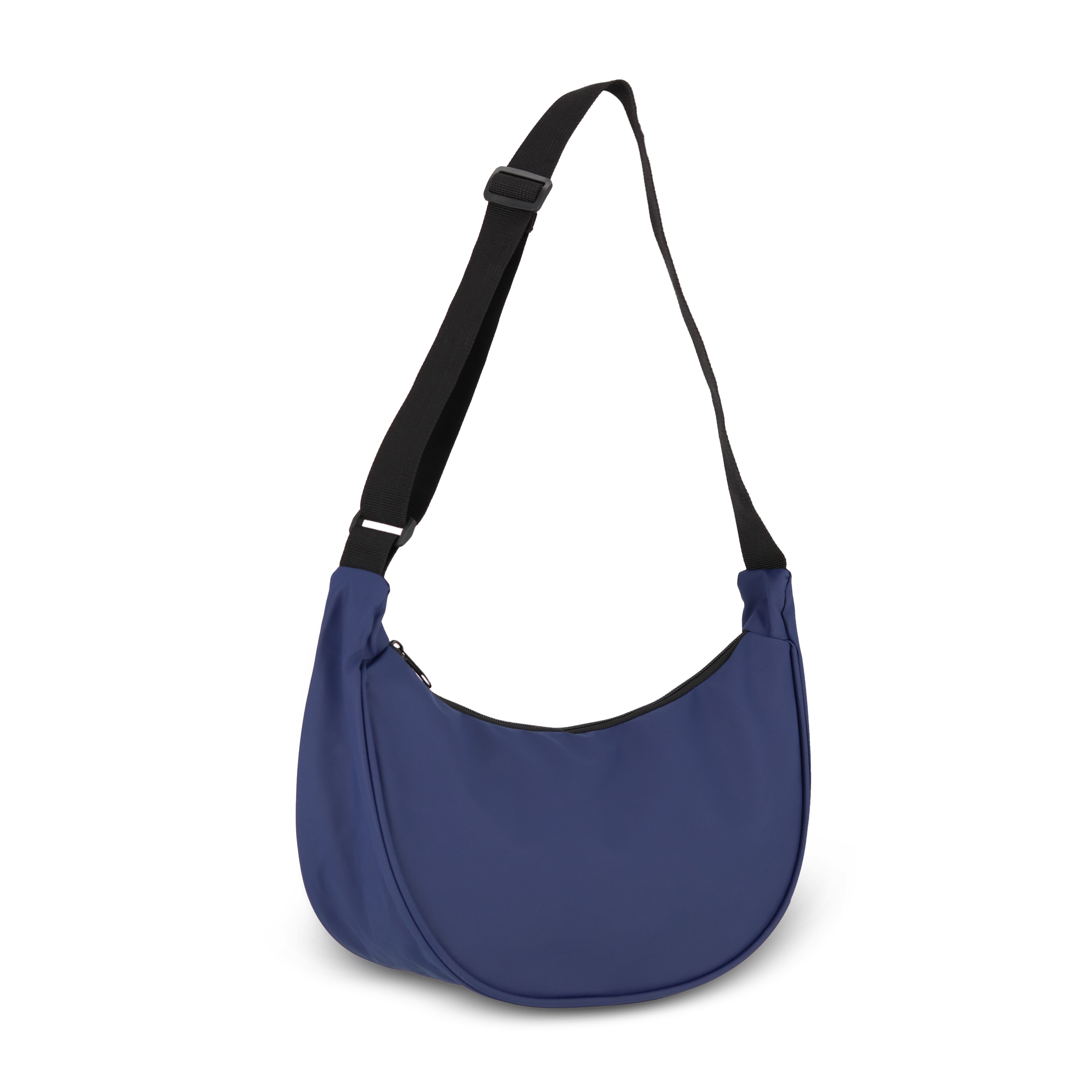 Diese Halbmond-Tasche aus PU-beschichtetem, recyceltem PET aus 600D-Material verfügt über einen verstellbaren Schultergurt und zwei Innentaschen für Zubehör zur geordneten Aufbewahrung.