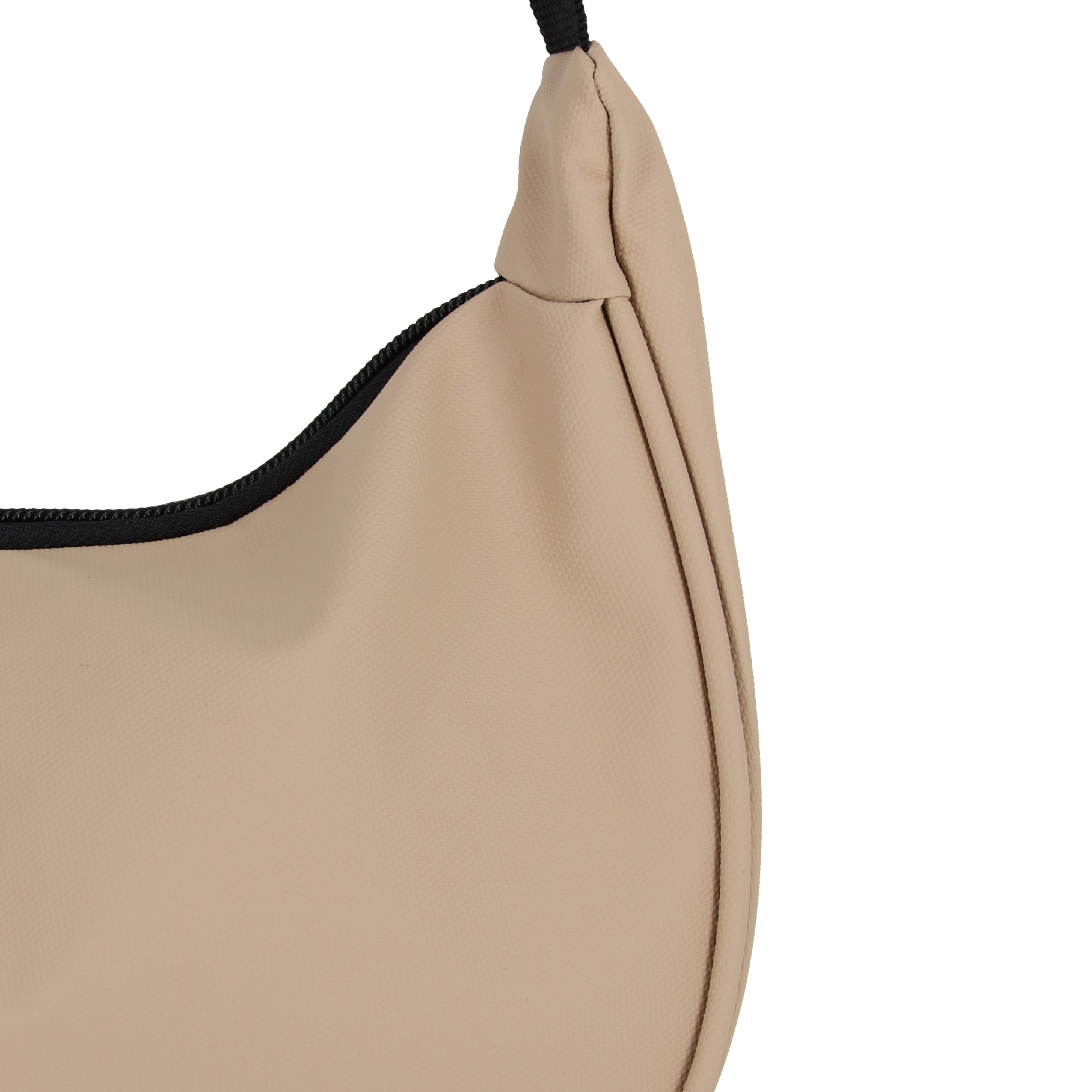 Diese Halbmond-Tasche aus PU-beschichtetem, recyceltem PET aus 600D-Material verfügt über einen verstellbaren Schultergurt und zwei Innentaschen für Zubehör zur geordneten Aufbewahrung.