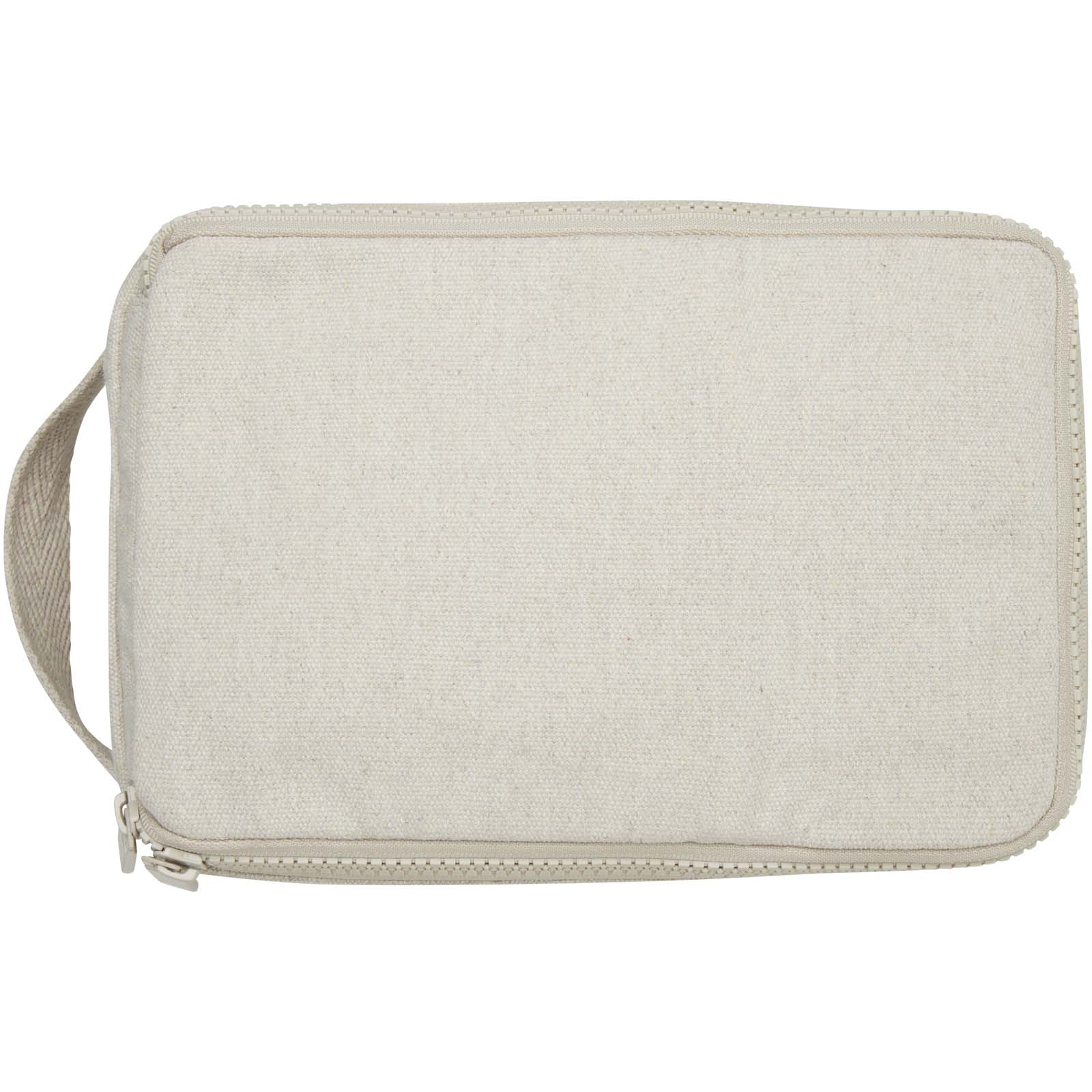 Kulturbeutel aus 500 g / m² Recyclingbaumwolle und recyceltem Polyester mit einem geräumigen Hauptfach mit Reißverschluss und mehreren Innentaschen. Das vielseitige Design eignet sich auch für kleine Gegenstände wie Socken oder Ladegeräte und sorgt für Ordnung im Gepäck. Die Tasche enthält Cyclo®-Recyclingfasern aus vorsortierten Abfällen, die die Farbe des Garns bestimmen. Diese Fasern verringern nicht nur den Bedarf an neuen Rohstoffen, sondern sind auch Ausdruck des Engagements für eine Kreislaufwirtschaft und verkörpern das Wesen der Abfallvermeidung und der Förderung eines geschlossenen Kreislaufs. Jede Tasche wird außerdem mit einem Aware™ Tracer geliefert. Diese innovative Funktion ermöglicht es den Nutzern, die Herkunft und den Weg ihres Artikels mithilfe eines QR-Codes nachzuvollziehen, wodurch die Transparenz der Lieferkette erhöht und eine stärkere Verbindung zwischen dem Produkt und seinem Herstellungsprozess fördert.