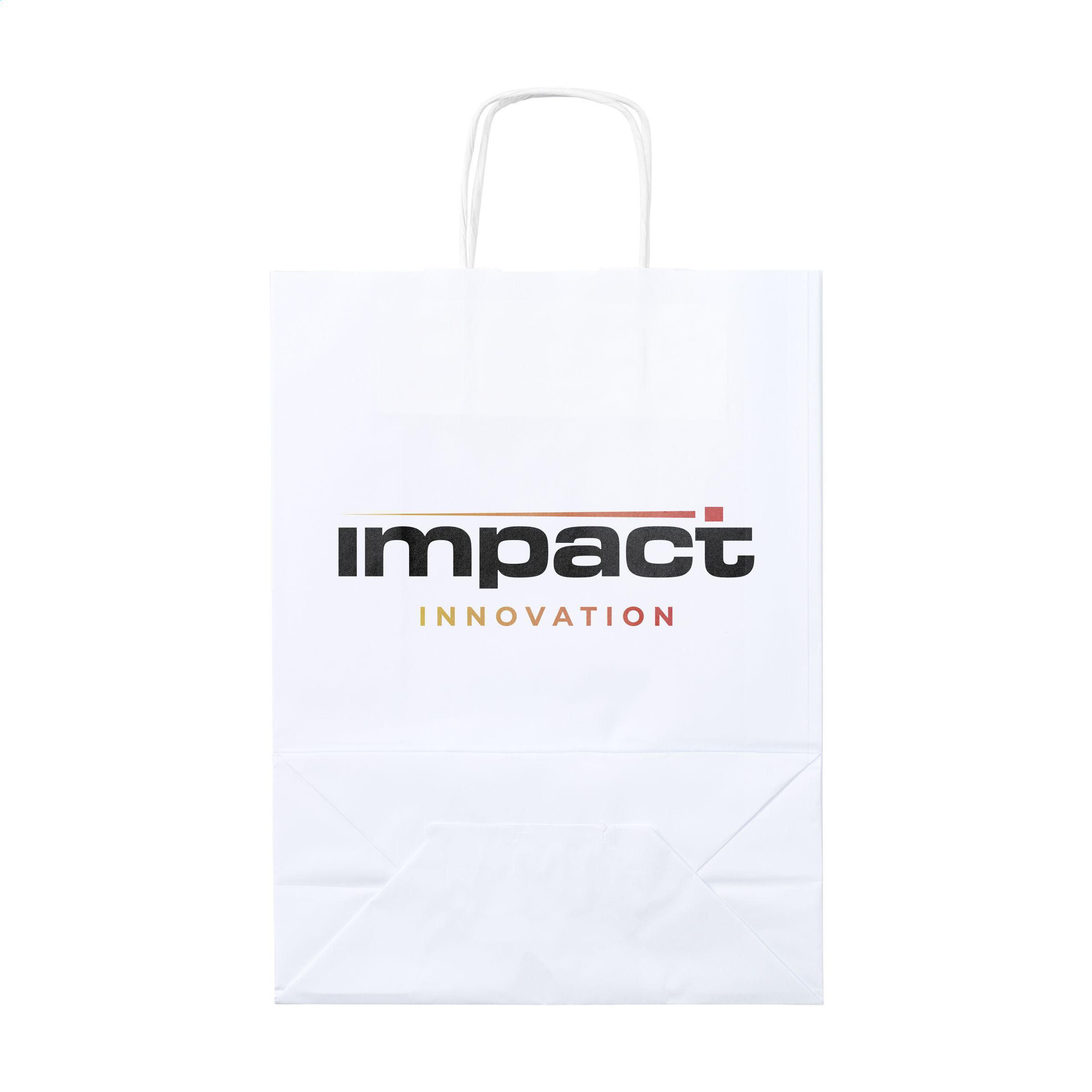 Solide Geschenktüte aus Papier (80 g/m²) im A4-Format, ideal für Werbeaktionen, Messen oder als Verpackung im Einzelhandel. Mit kurzen, stabilen Trageschlaufen aus Papier, einer Seitenfalte und einem gefalteten Boden für zusätzlichen Komfort. Die Vorder- und Rückseite sind vollständig mit einem Vollfarbdruck personalisierbar - ein budgetfreundlicher, praktischer und auffälliger Träger für Ihre Marke. 100% recycelbar. Erhältlich in Weiß und Braun.