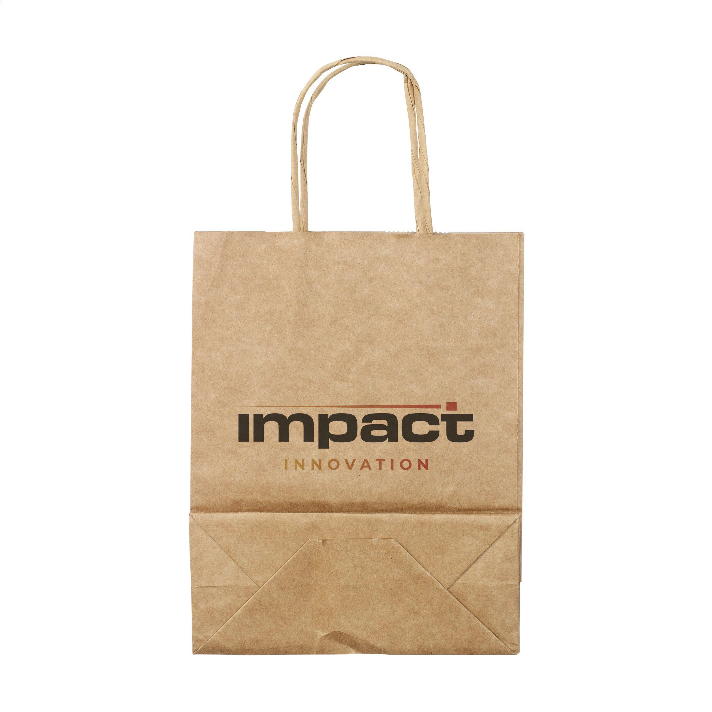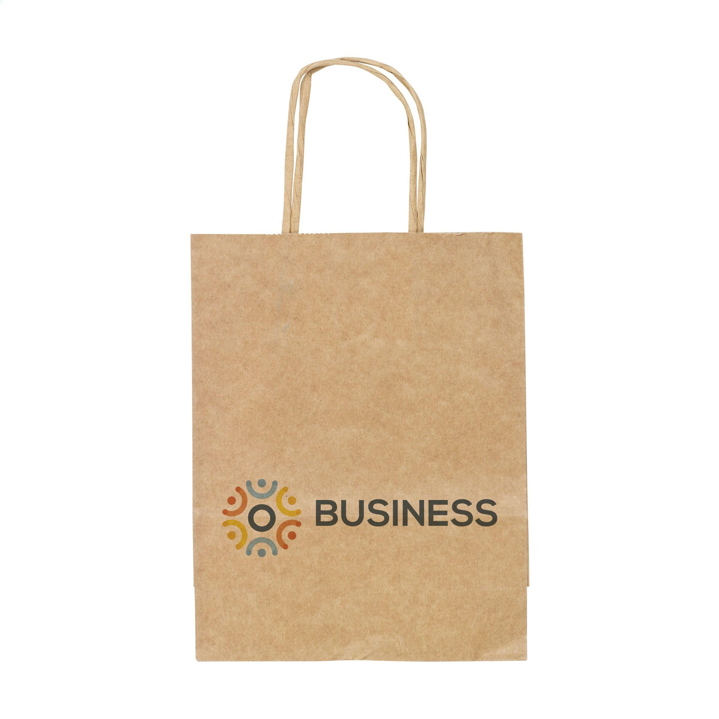 Solide Geschenktüte aus Papier (80 g/m²) im A5-Format, ideal für Werbeaktionen, Messen oder als Verpackung im Einzelhandel. Mit kurzen, stabilen Trageschlaufen aus Papier, einer Seitenfalte und einem gefalteten Boden für zusätzlichen Komfort. Die Vorder- und Rückseite sind vollständig mit einem Vollfarbdruck personalisierbar – ein budgetfreundlicher, praktischer und auffälliger Träger für Ihre Marke. 100% recycelbar. Erhältlich in Weiß und Braun.