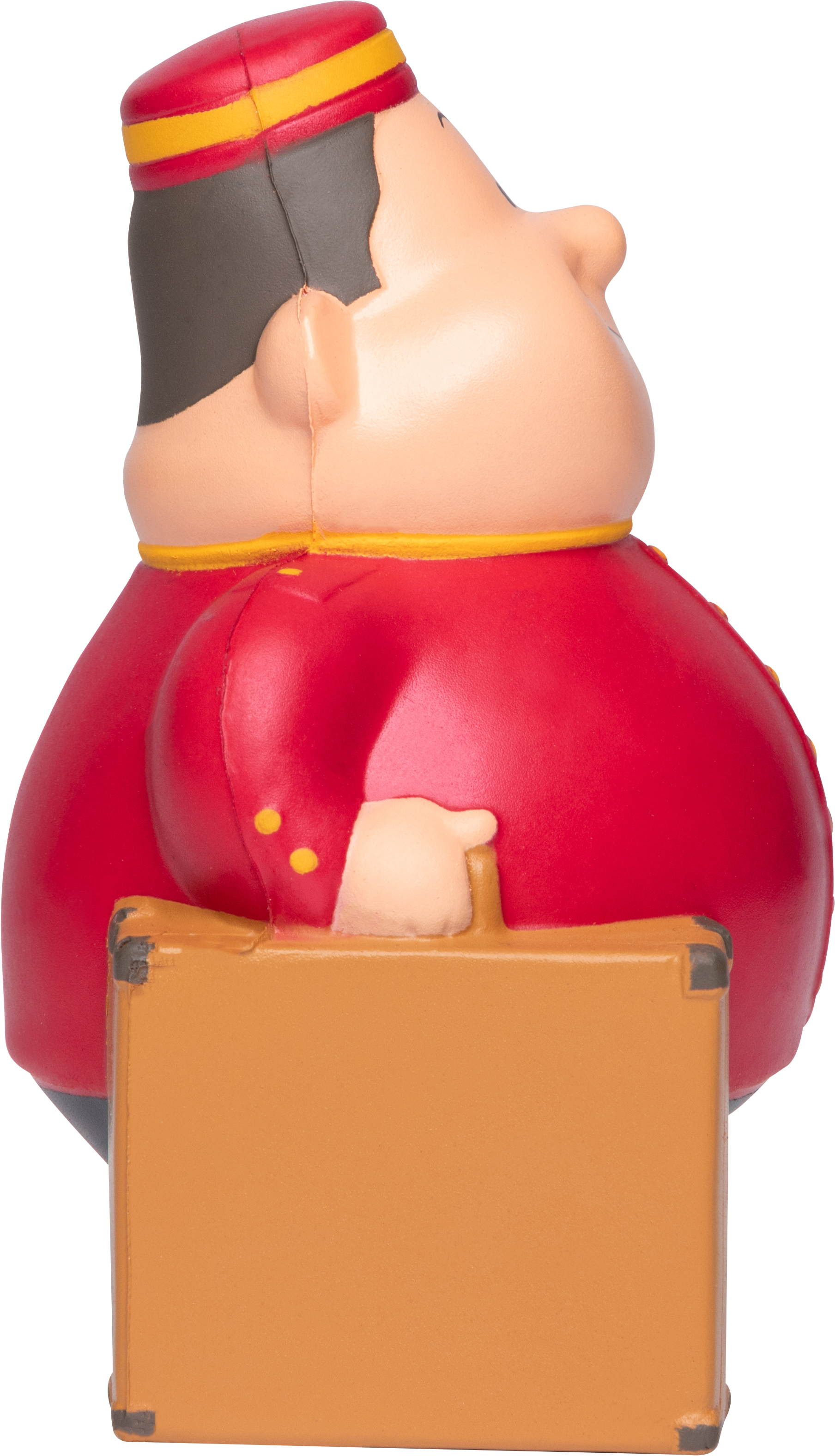 SQUEEZIES® Page Bert® bringt lächelnd Ihr Gepäck ins Zimmer - der Aufenthalt im Hotel kann also schon stressfrei beginnen. Dass die gesamte Zeit entspannt bleibt, stellt Bert® natürlich auch sicher: Zum Abbau von Stress einfach "zusammenknautschen". Durch die Materialbeschaffenheit nimmt das Produkt die Ursprungsform wieder ein.