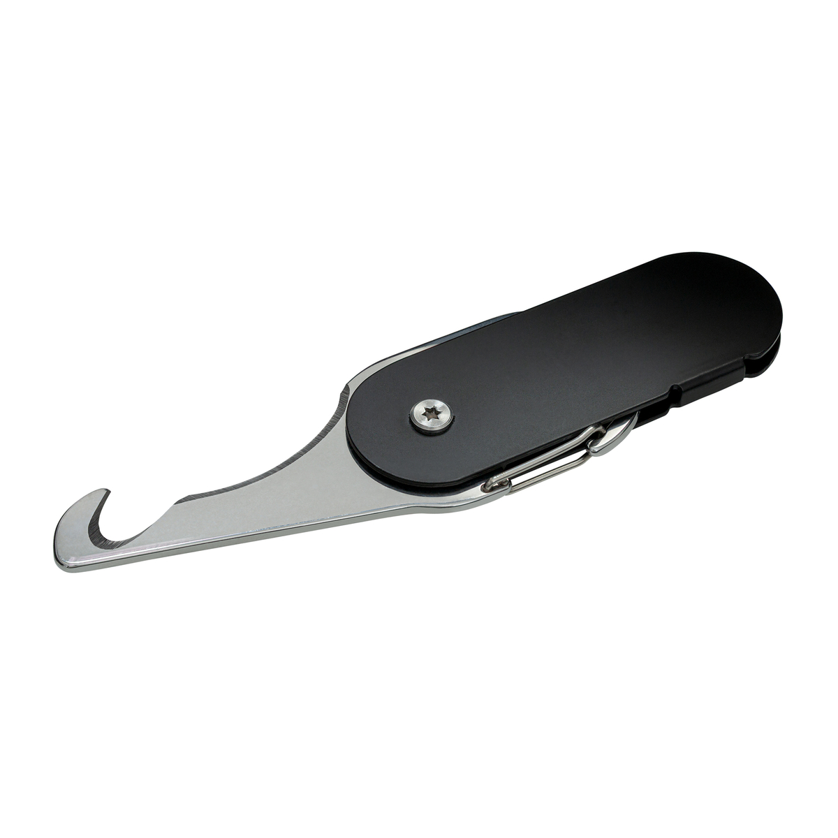 Ob Sie beruflich Pakete öffnen oder ob Ihr Onlineshopping etwas außer Kontrolle geraten ist – Fakt ist: Wenn Sie viele Pakete mit sensiblem Inhalt öffnen, ist ein handelsübliches Cuttermesser nicht immer die beste Wahl. Durch die eintauchende Klinge kann das Innere des Pakets beschädigt werden. Unser handlicher Helfer bietet die Lösung!Der RE98-Daily Helper Parcel ist ein handliches Tool mit einem Paketöffner mit rückwärtiger Schneide, Lineal und Clip-Karabiner zur Befestigung an Taschen, Gürtelschlaufen oder dem Schlüsselbund. Immer griffbereit können Sie durch Drehen des Karabiners das Werkzeug ausklappen. Dank der hochwertigen, innenliegenden Kugelführung bleibt das vollständig ausgeklappte Tool stabil. Nach Gebrauch können Sie den Paketöffner durch Drehen wieder sicher im mattschwarzen Schutz verstauen, sodass Sie sich in diesem Zustand nicht an der Schneide verletzen können. Was macht den RE98-Daily Helper Parcel besser als ein normales Cuttermesser? Die Klinge des Öffners ist geschützt und kommt nicht mit dem Inneren des Pakets in Kontakt. Die Schneide liegt rückwärtig, ähnlich wie bei einem Haken. In Kontakt kommt nur die stumpfe, runde Spitze des Werkzeugkopfes. Das Tool ist aus extrem robustem SS420-Edelstahl gefertigt. Eine hochwertige, rot eloxierte Aluminiumscheibe sorgt für zusätzliche Stabilität und trägt zur erstklassigen Verarbeitung und Haptik bei. Der mattschwarze Schutz bietet eine große und präsente Werbefläche. Der Multifunktions-Helfer kann durch Tampondruck oder Lasergravur individuell veredelt werden. Das Produkt wird in einer hochwertigen 1C-Geschenkverpackung geliefert.