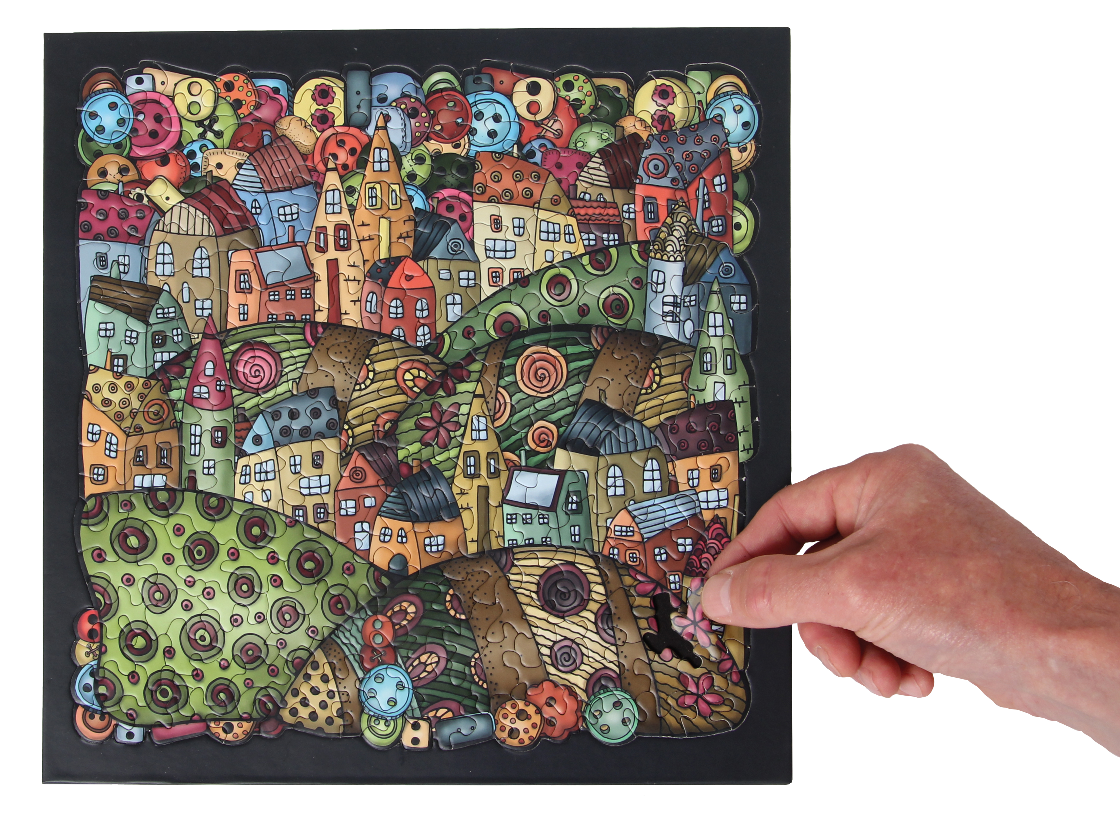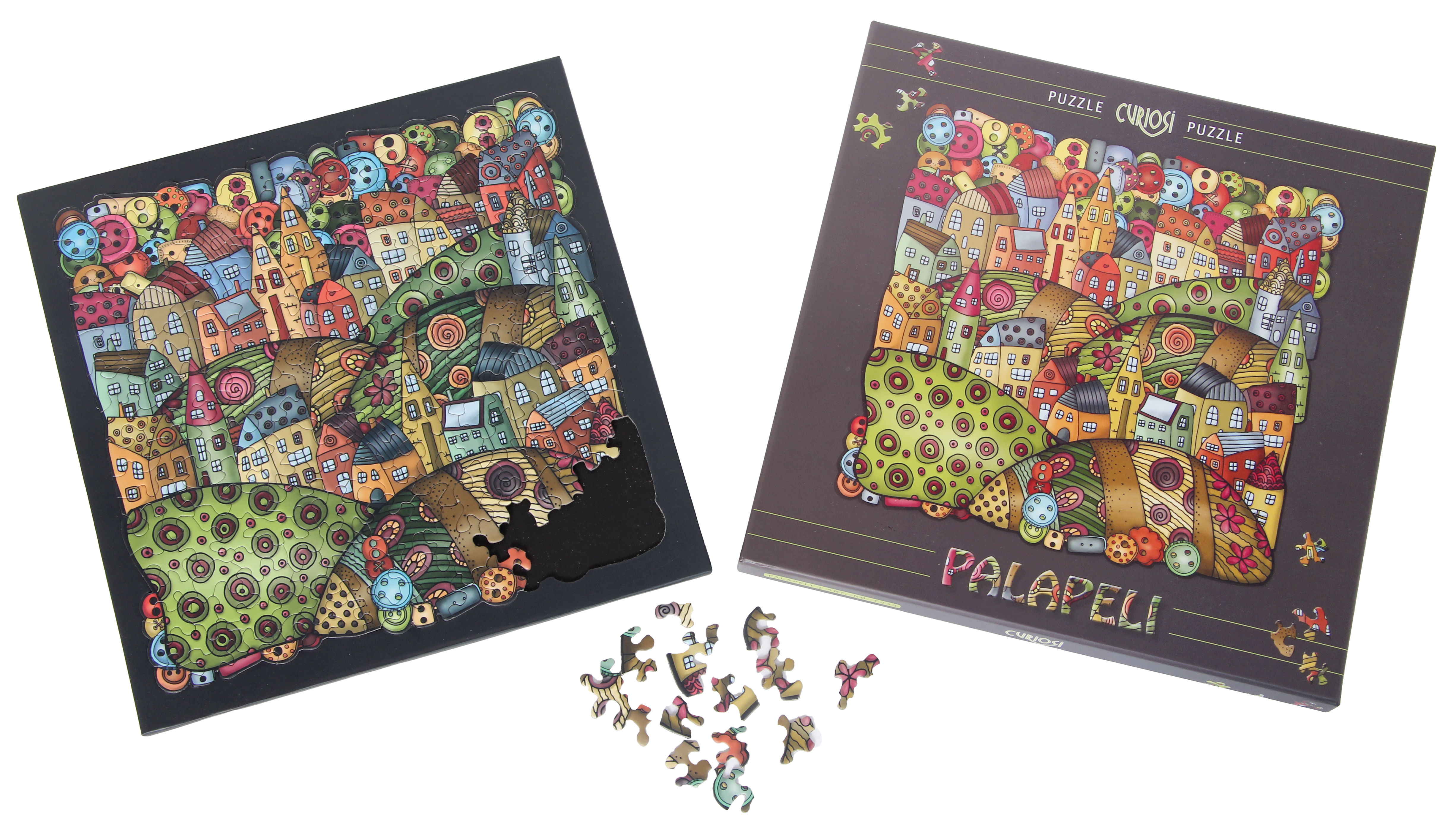 Palapeli (finnisch: Puzzle) das besondere Rahmenpuzzle! So frisch wie der Name gestaltet sich das Puzzle PALAPELI. Farbenfrohe Grafik, ungewöhnliche Puzzleteile ohne einfache gerade Rahmenteile und ein wunderbares Puzzletablett zum Aufstellen oder Aufhängen des vollendeten Werks. Eine hochwertige Geschenkidee für Jung und Alt!