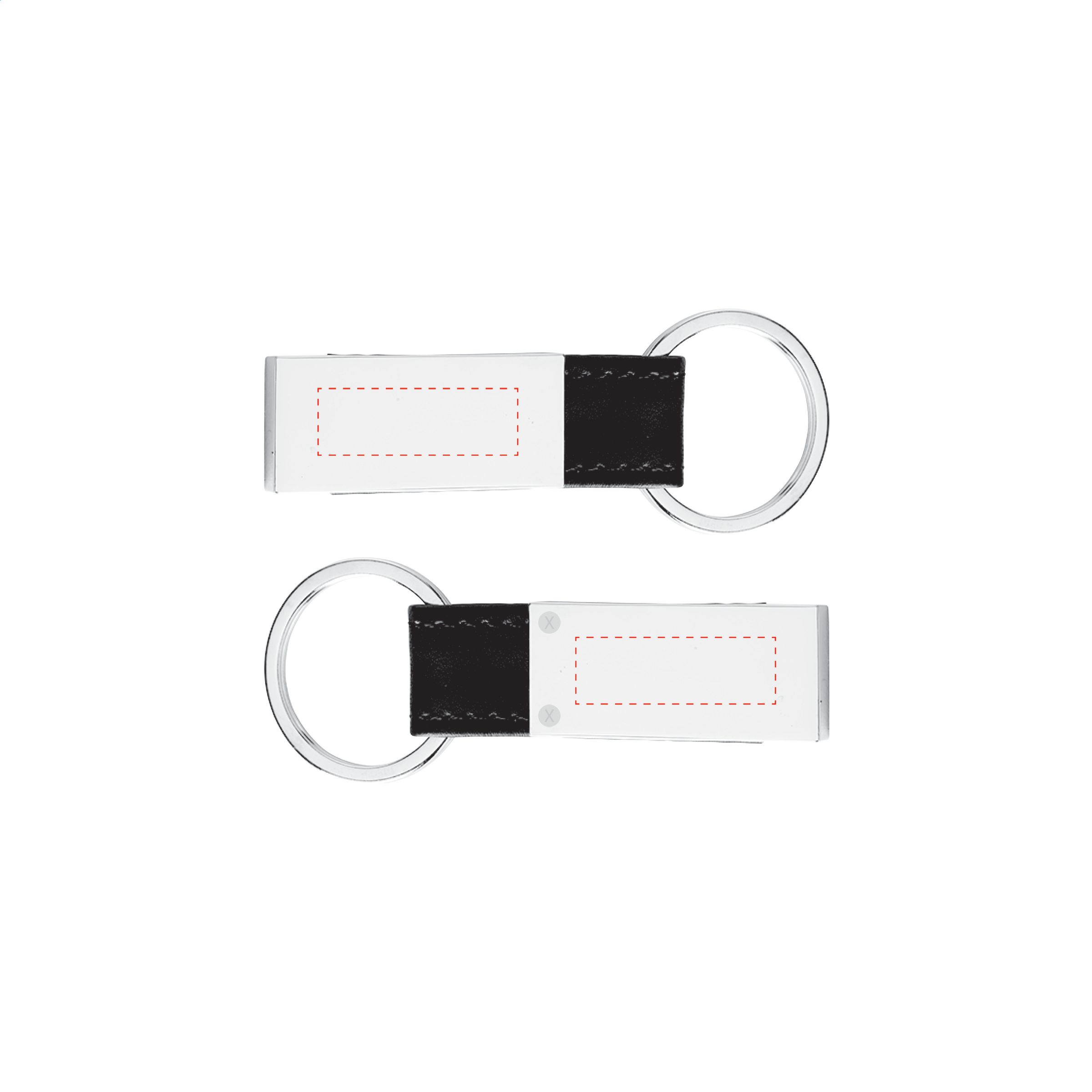 Schlüsselanhänger aus Metall in Kombination mit schwarzem PU-Lederlook-Material. An stabilem Schlüsselanhänger. Pro Stück in einer Verpackung.