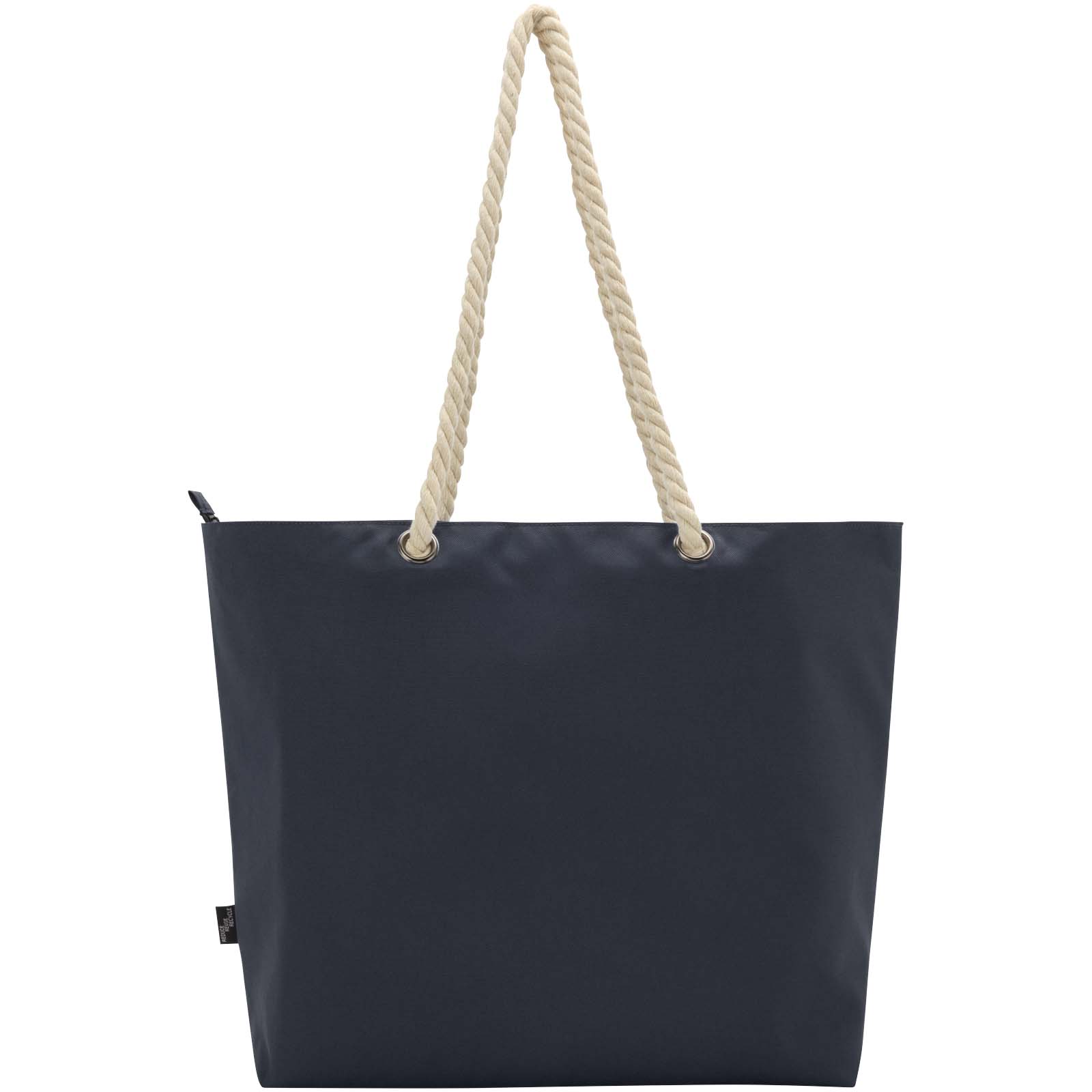 Die Panama Kühltragetasche besteht aus GRS-zertifiziertem Recycling-Polyester und verfügt über ein großes Hauptfach mit Reißverschluss sowie hochwertige Tragegriffe aus Alufolie und Baumwollkordel. Geeignet für verschiedene Aktivitäten wie Einkaufen, einen Tag am Strand oder im Park. Fassungsvermögen: 23 Liter. Beständigkeit bis zu 10 kg. PVC frei.