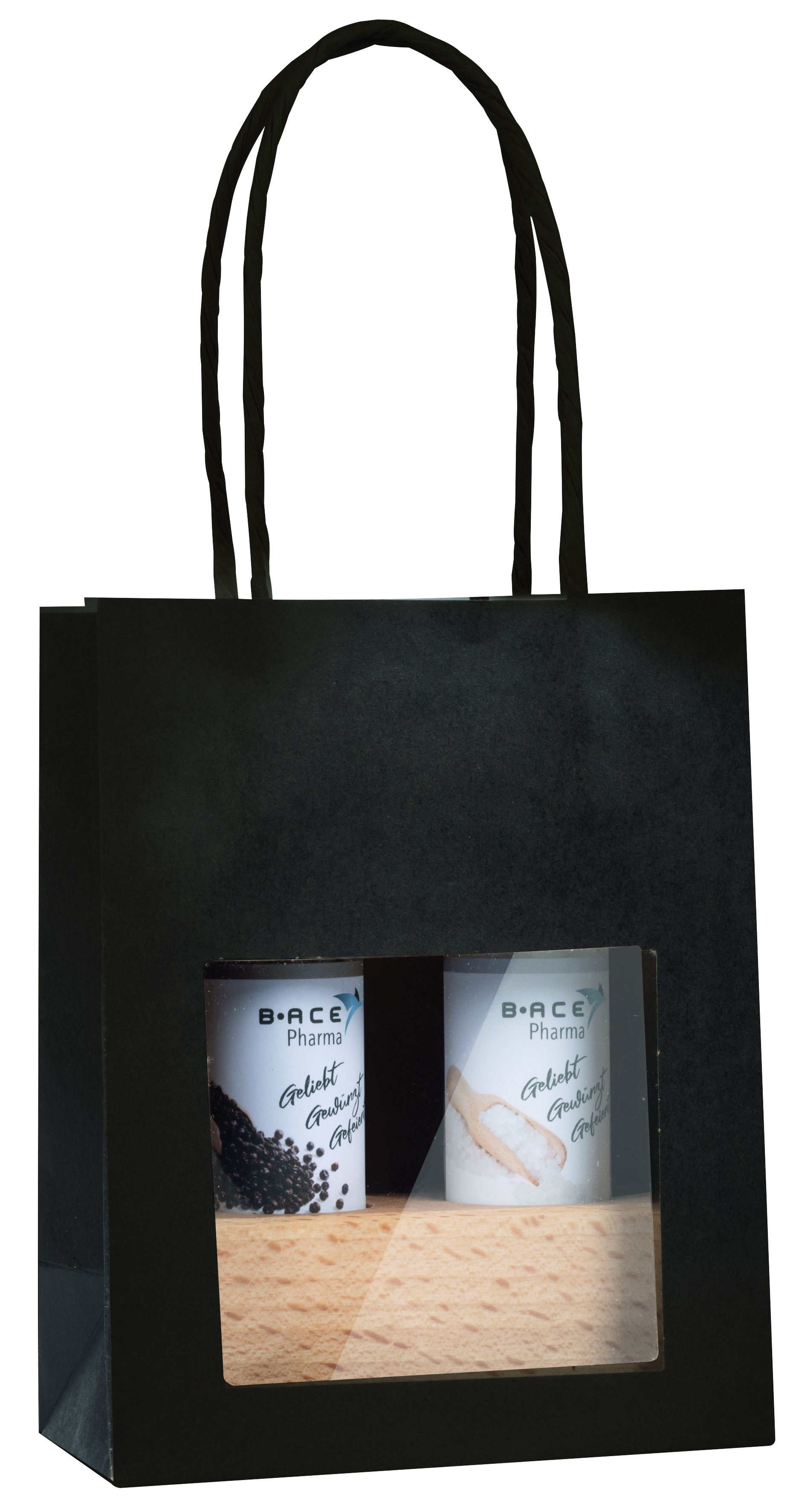 Edler Aufsteller aus geöltem Buchenholz inkl. 2 würzigen "Mini" Mühlen, ein werbewirksamer Blickfang in jeder Küche. Jetzt NEU: Papier-Tragetasche (naturbraun oder schwarz, blanko) mit Sichtfenster, als nachhaltige Umverpackung (wird separat plano geliefert). Lieferumfang: 2 "Mini" Mühlen inkl. 4c-Etikett, im Holz-Aufsteller, Papier-Tragetasche (Lieferung plano). Mögliche Füllungen: Grillsalz, Grillgewürz, Chili-Salz, Pfeffer geschrotet, Kräuter-Salz, Knoblauch-Salz, Salz & Pfeffer, Gourmet-Salz, Weihnachtsgewürz oder Brotzeit-Gewürz. "Mini" Mühlen inkl. 4c-Digitaletiketten. Zusätzliche Gravur auf dem Aufsteller auf Anfrage möglich. Druckvorkosten bereits inklusive.